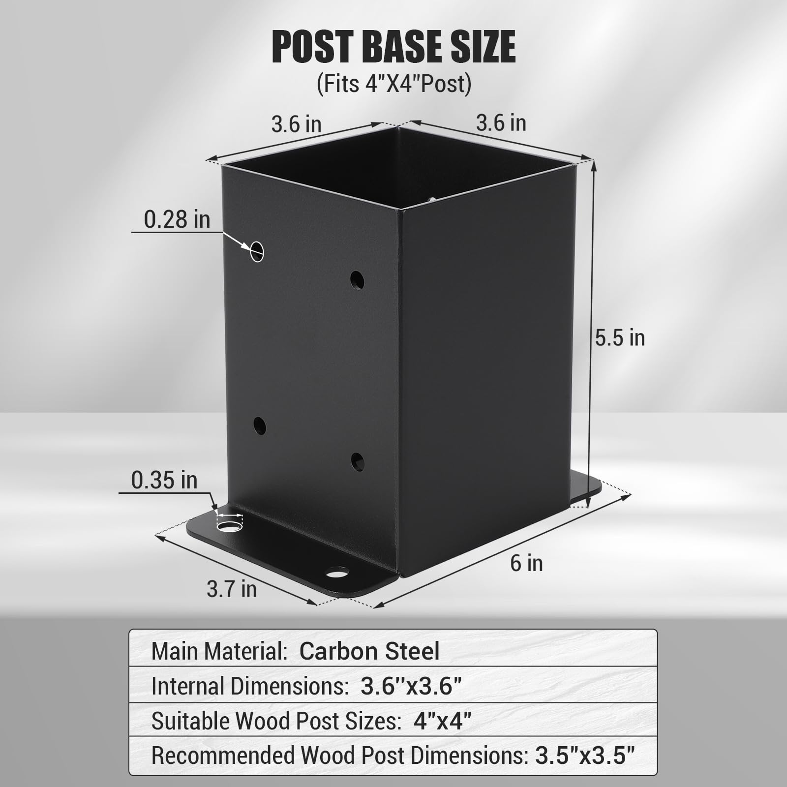- ✔️ Heavy-Duty Powder-Coated 4x4 Post Base:Square Post Anchor constructed with robust steel and a rust-resistant powder-coated finish, built to endure extreme weather. Includes all mounting hardware for quick setup.