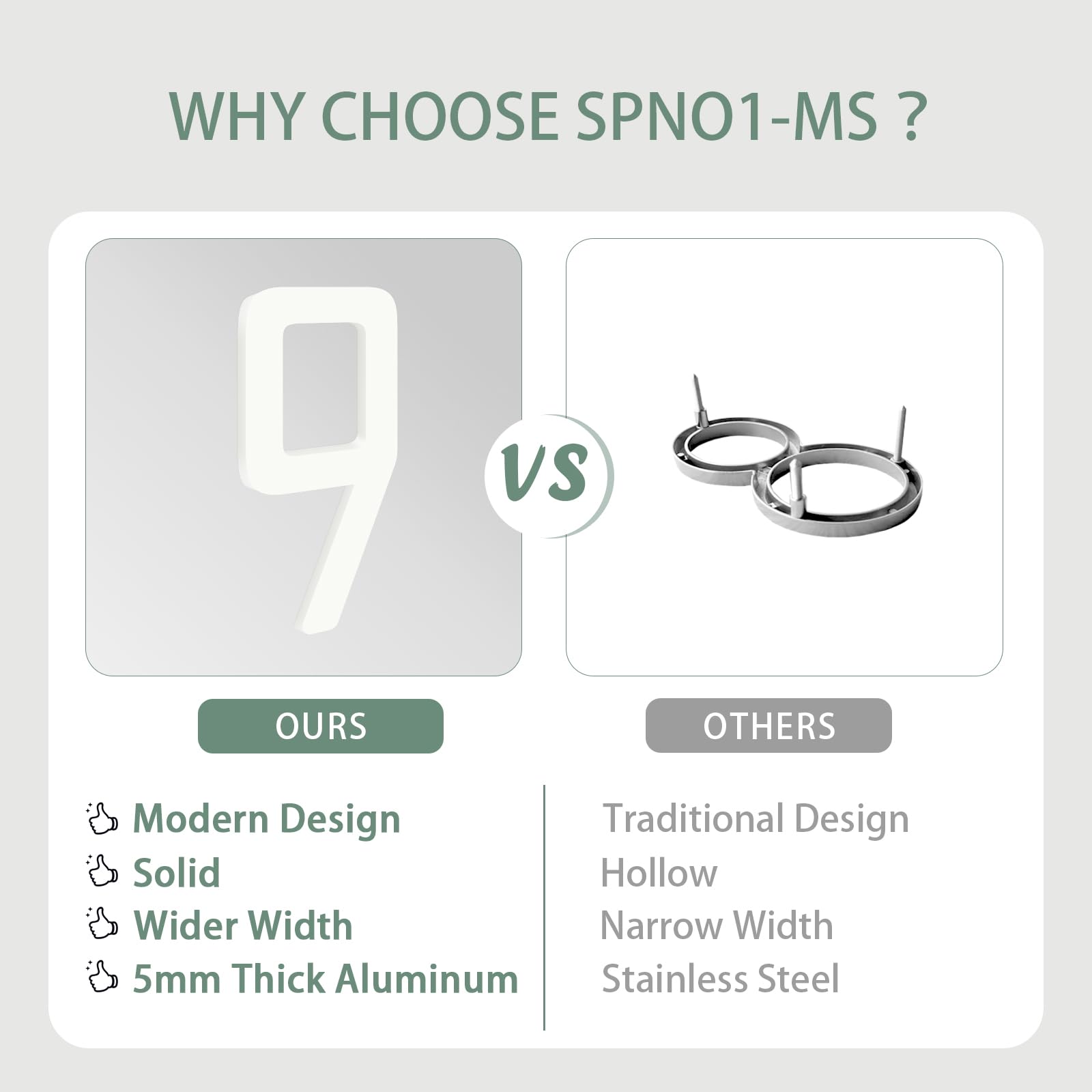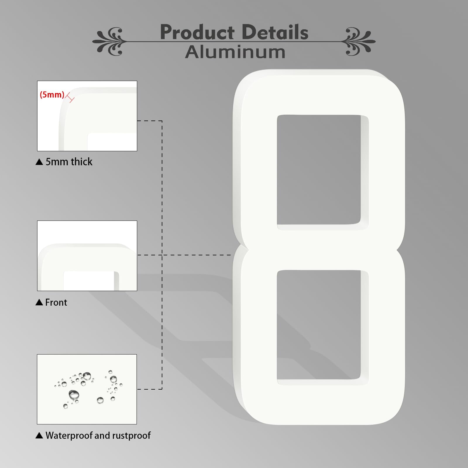 - Quality Material: The modern house address numbers and letters are made of high-quality solid aluminum metal with 5mm thick for durability. The surface has a matte finish that fits well with modern decor.