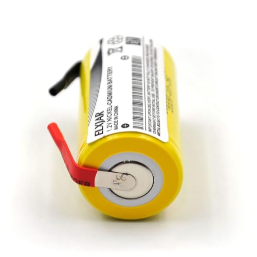 - BATTERY SPECIFICATIONS: Ni-CD rechargeable battery, 1.2V, 2000mAh capacity, with dimensions of 0.87" (Diameter) x 1.67" (Height). Features flat-top design with tabs for easy soldering.