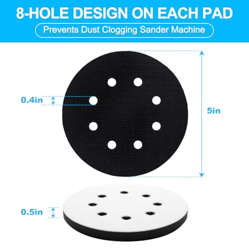5 Packs 5 Inch Foam Sanding Pads, Flexibility & Durability, Premium 8 Holes Sponge Cushion Buffer Backing Pad, Less Clogging, Hook and Loop Soft Density Interface Pads, Strong Adhesion