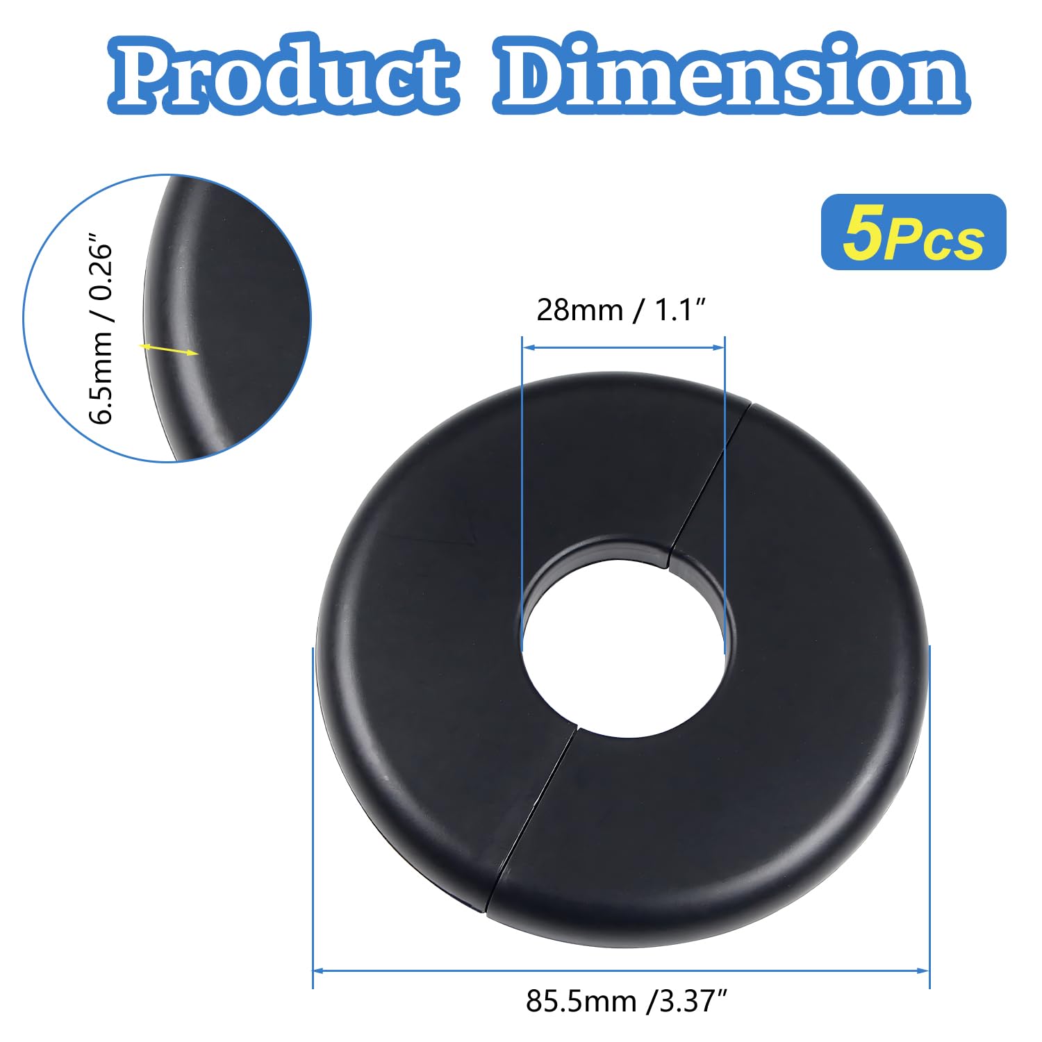 5Pcs Wall Split Flange for 1"/26mm Diameter Pipe ABS Round Self-Adhesive Escutcheon Plates Water Pipe Decoration Cover for Water Pipe Faucet Wall Hole Decoration (Black)