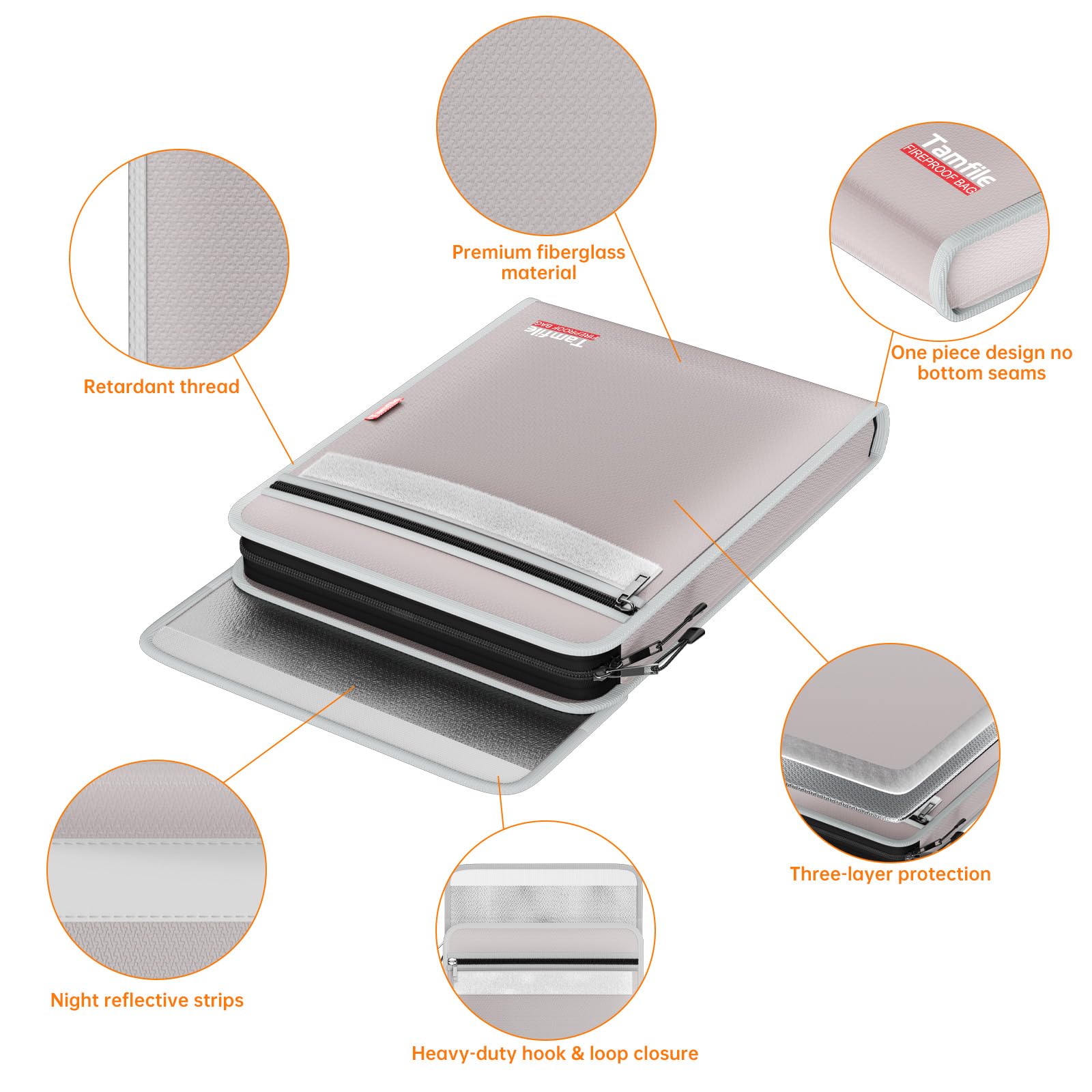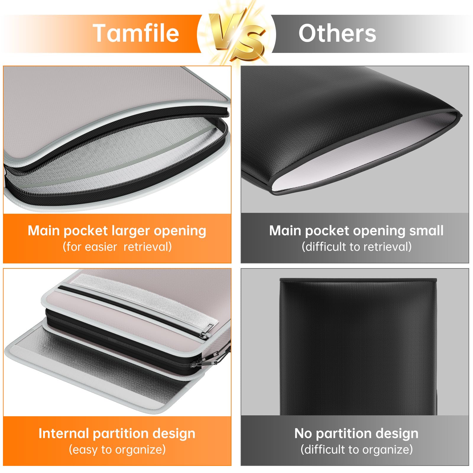 - [Highest standard of customer service] Tamfile is committed to researching fireproof products, just to bring you good products and excellent customer experience.If you have any problems, please feel free to contact us, we will serve you wholeheartedly. (Tips: The fireproof safety bag needs to be completely closed, otherwise it will affect the protection effect. Please zip up and fasten the Velcro to achieve the best protection effect; avoid folding or rubbing it for a long time.)
