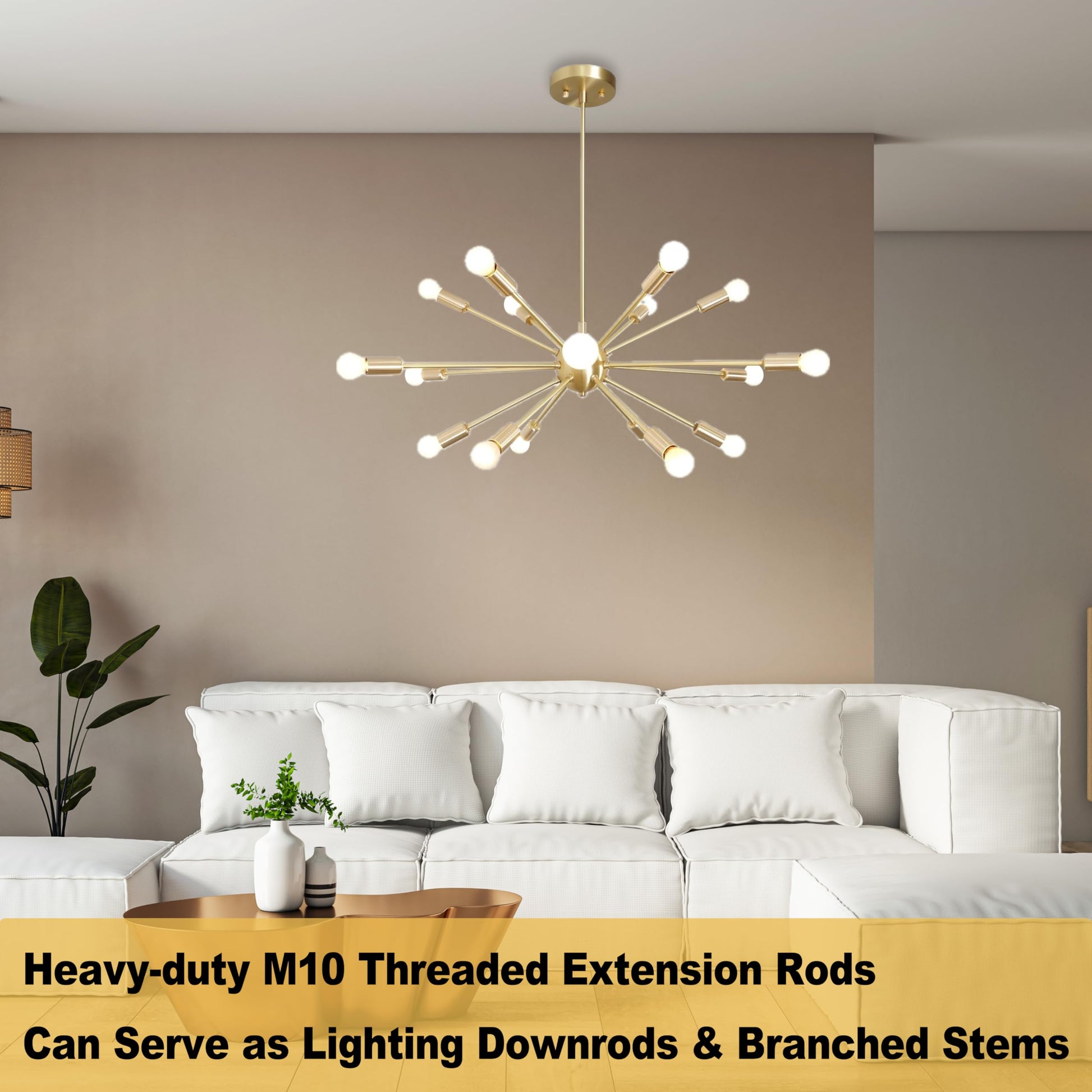 - 【Versatile Set】 - This set includes four long pieces of 12-inch extension poles and four short pieces of 6-inch extension poles in brass finish, Each pole/stem is installed with 1 x M10 threaded pipe connector, which allows you to easily customize the length of the downrods to suit your specific needs, offering convenience and flexibility. Besides, this set also includes a 180-degree rotable sloped ceiling adaptor to help hang the lighting fixture straight down on any sloped ceiling. This lighting extension pole set ensure a hassle-free installation and modification process for various lighting setups.