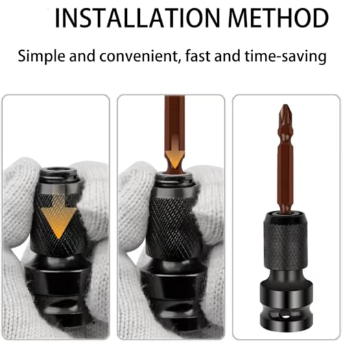 - Quick Release Security Lock Design: 1/2 Inch Square Female to 1/4 Inch Hex Female Socket Adapter Good qualityDrill chuck converter made of high quality material for maximum strength and durability.