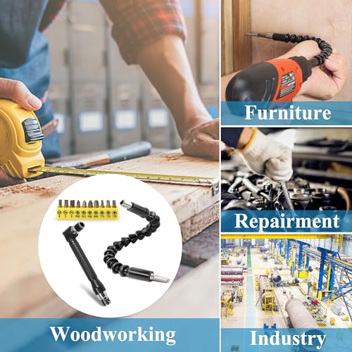 - ¡¼Comprehensive Kit¡½:This versatile drill bit extension kit features a 1 x flexible extension shaft,1 x 90¡Æ right angle screwdriver bit, and 10 x assorted screwdriver bits.Everything you need for accessing tight and hard-to-reach spaces is included.