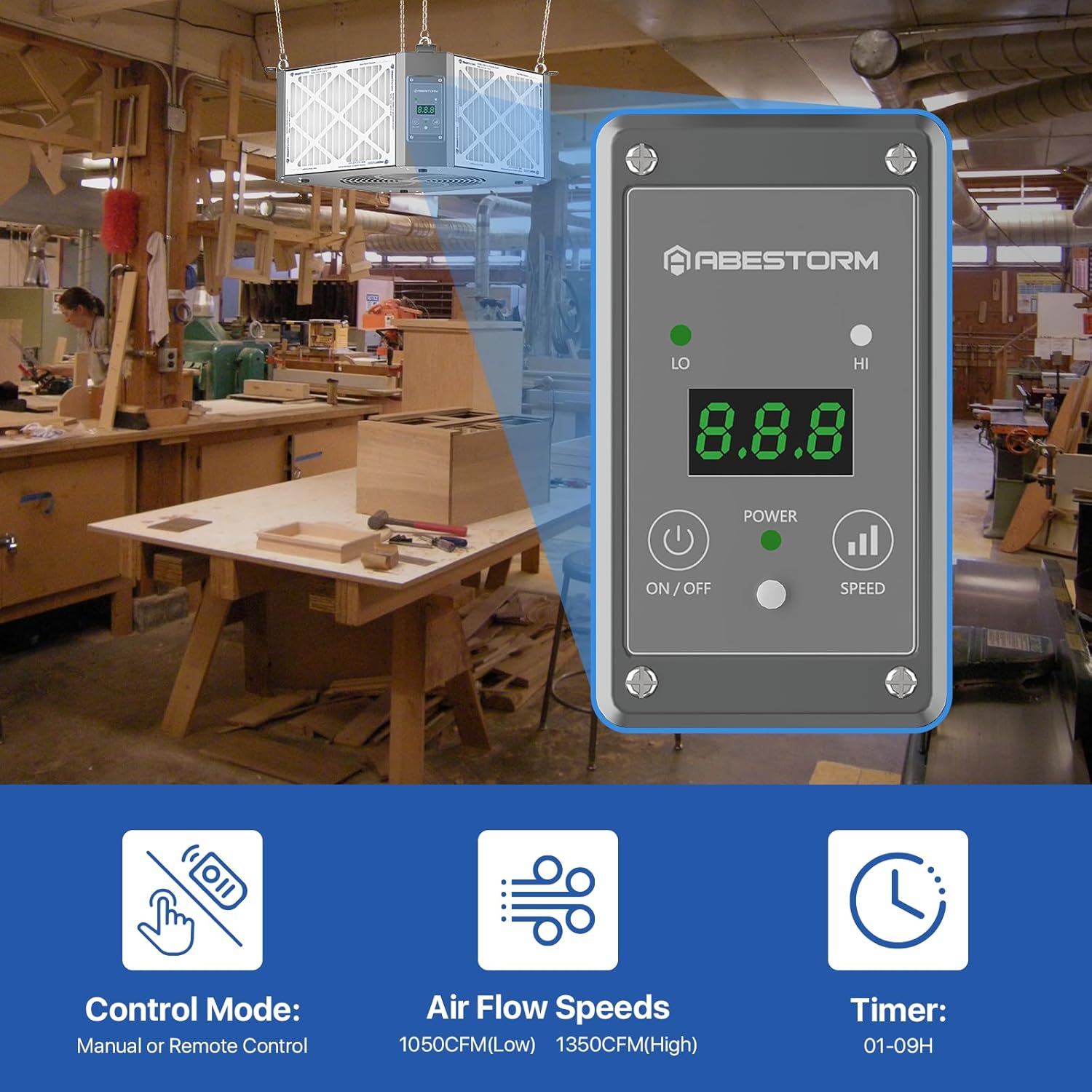 ABESTORM 360 Degree Intake Air Filtration System for Woodworking, 1350 CFM Hanging Dust Collector, Air Filter for Shop Garage WorkShop, DecDust 1350