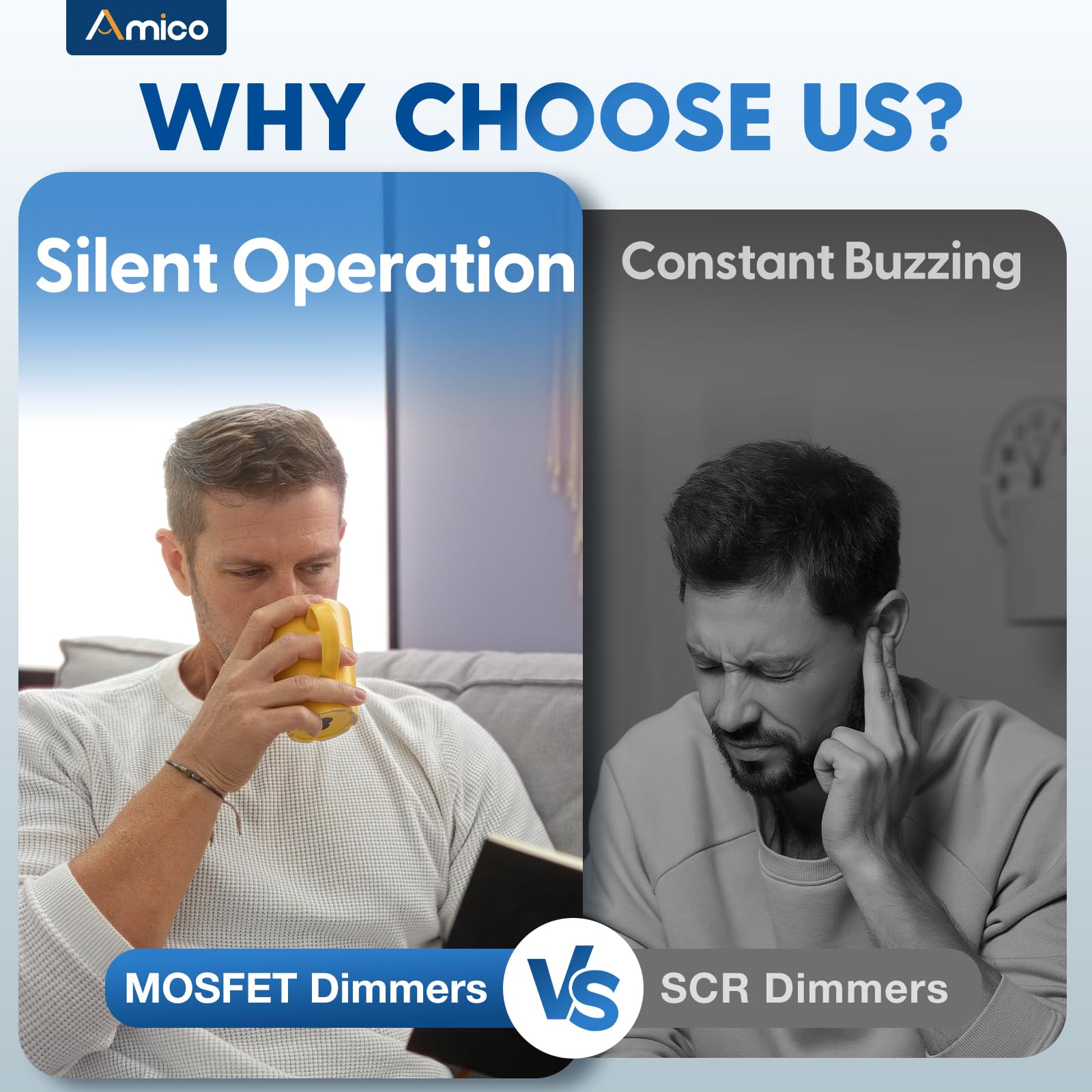 - Amico Benefits: All of Amico's dimmer switches come with a 3-year product support, ensuring reliable performance. Our customer support team will also address your concerns within 24 hours