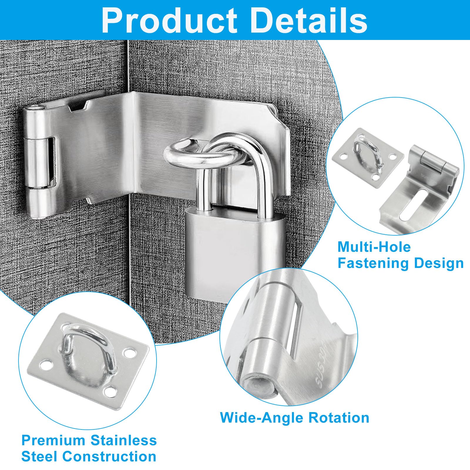 - Space-Saving Compact Design: With a discreet 3-inch profile and smooth, rounded edges, these 90 degree hasp latches blend seamlessly into doors, cabinets, and storage units. The precision-engineered 90° angle ensures flush alignment on vertical surfaces without protruding awkwardly, ideal for tight spaces like garden sheds or studio apartments.
