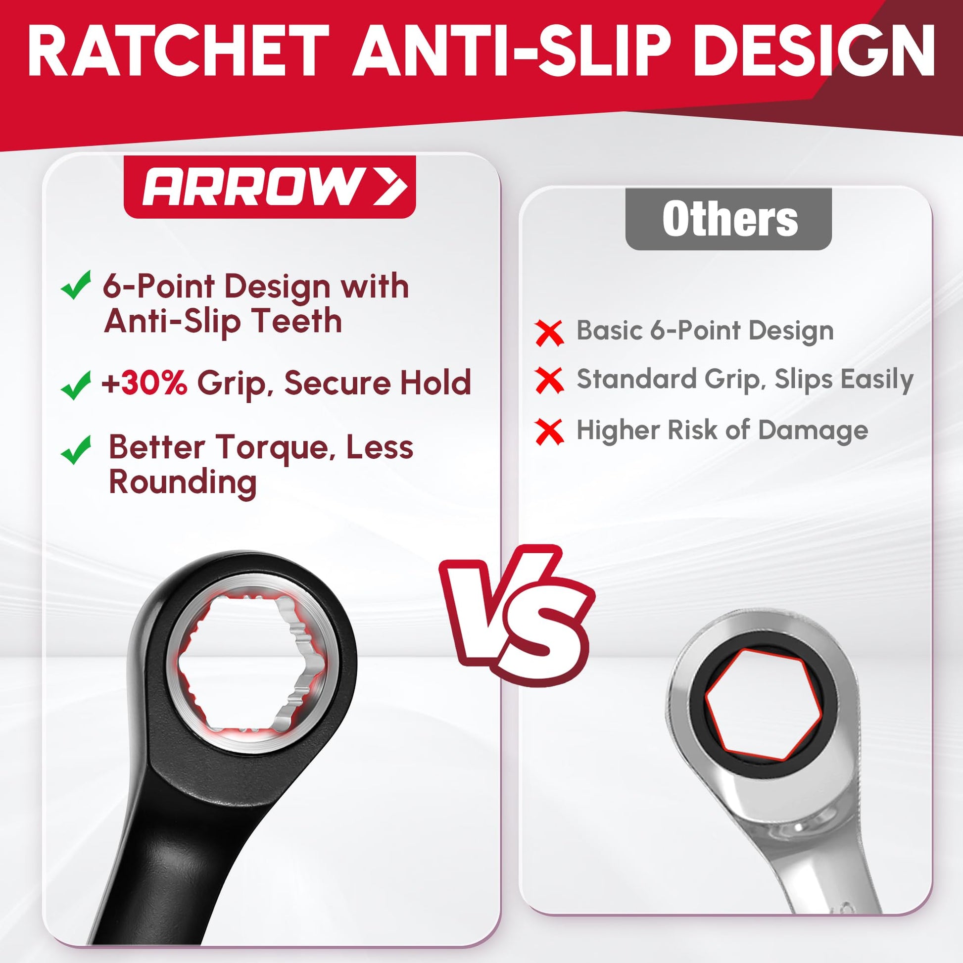 ARROW 24PCS Ratcheting Wrench Set Metric and Standard, Anti-Slip 6-18mm & 1/4"-3/4" Combination Ratchet Wrench Set with 2 Magnetic Tool Holders, CRV Material, 72-Teeth, Easy to Carry & Store