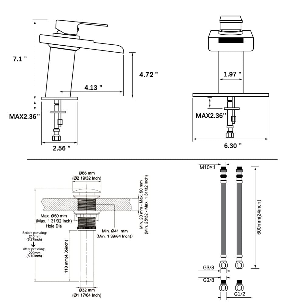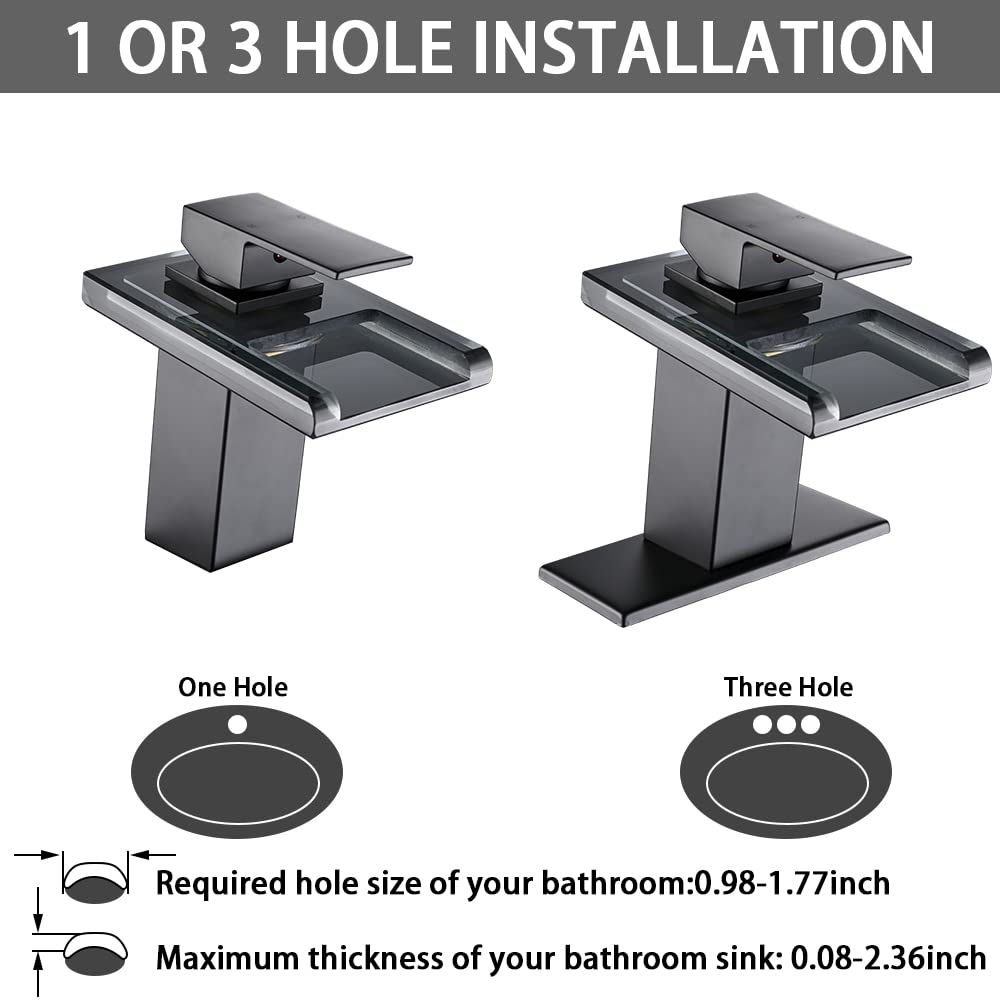 - EFFORTLESS INSTALLATION: LED faucet can be installed on one or three holes 4 inch center sink with the (included) optional 6.3" deck plate. Set-up is a breeze with this single hole installation faucet. All mounting hardware and hot/cold lines are conveniently included. The faucet is made of solid 304 stainless steel with matte black plated. Complete the look of your sink with the included pop-up drain assembly and optional deck plate.