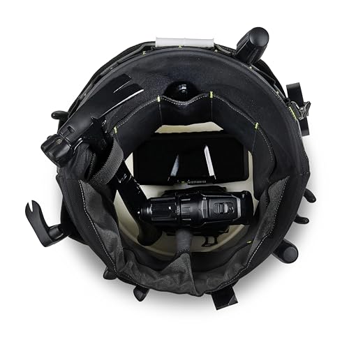 - Open Tool Access: This innovative tool bag features a magnet strip that provides quick access to fasteners and other small tools; a metal tape clip is also included for easy access to your tape measure