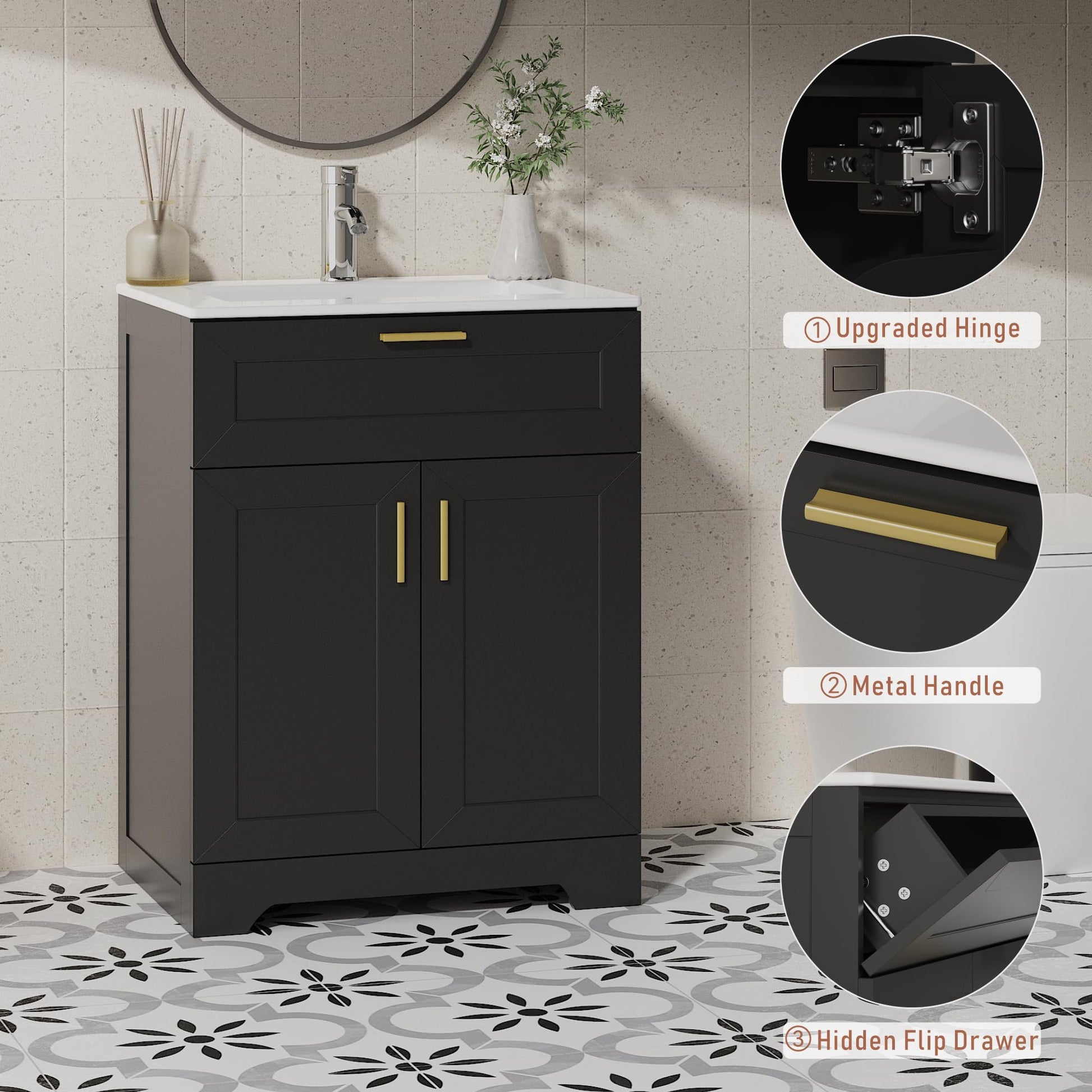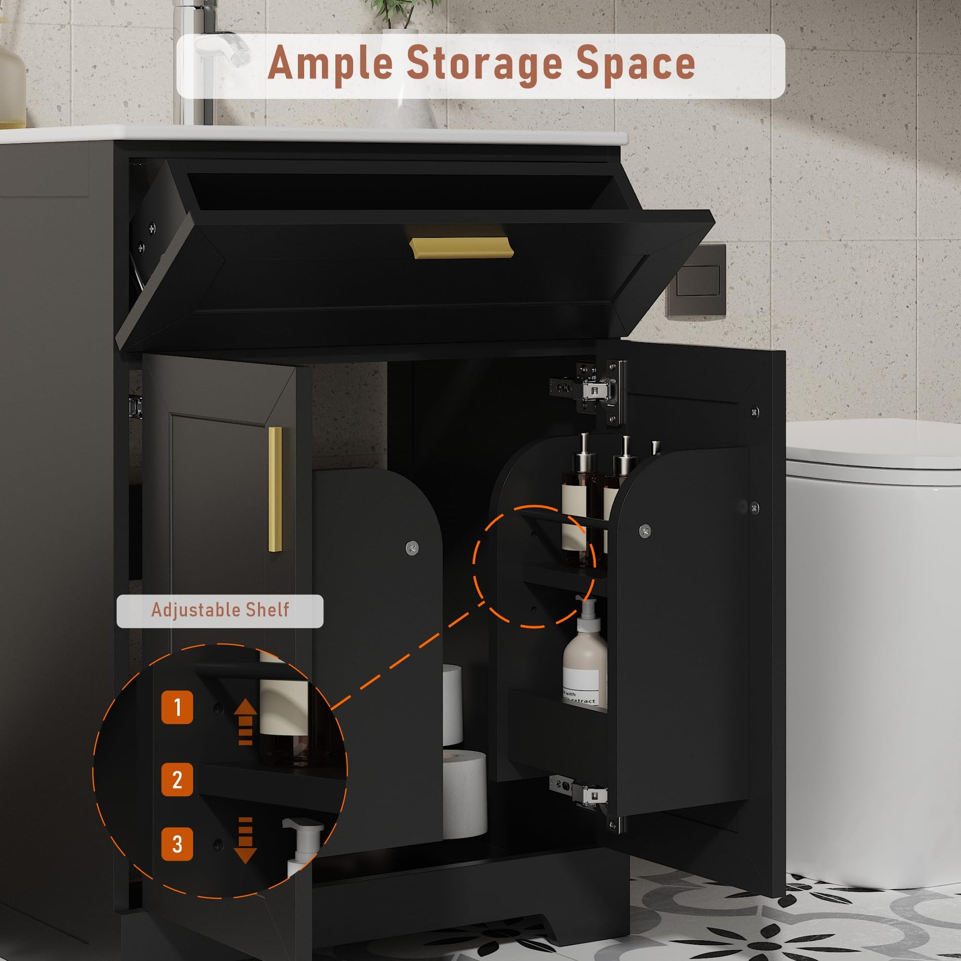 Ayiseedmid 24 Inch Bathroom Vanity with Ceramic Sink, Wooden Cabinet with Undermount Sink, Bathroom Storage Vanity with Sink-Combo Set, 2 Doors, Faucet, 1 Drawer (Black, 24")
