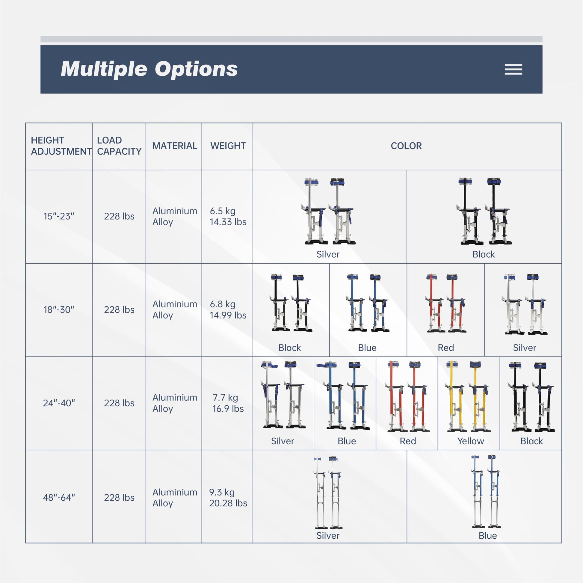 BATONECO Drywall Stilts for Adults, 24"-40" Adjustable Heights, Aluminum Painters Stilts for Working at High Places, Blue