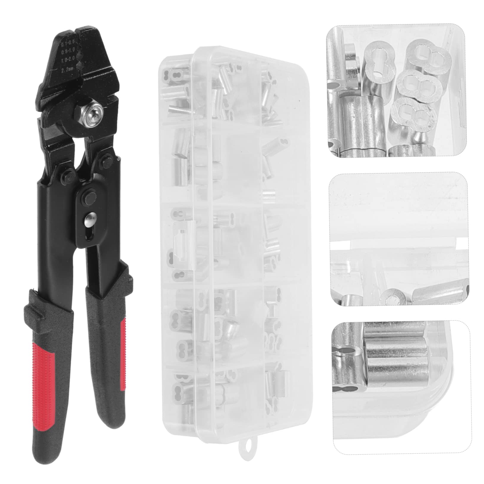 BELLIFFY 1 Set Ferrule Crimping Tool Kit with Wire Rope Cutter Non Slip Handle Self Locking Mechanism Ferrules for Fishing Outdoor and Projects