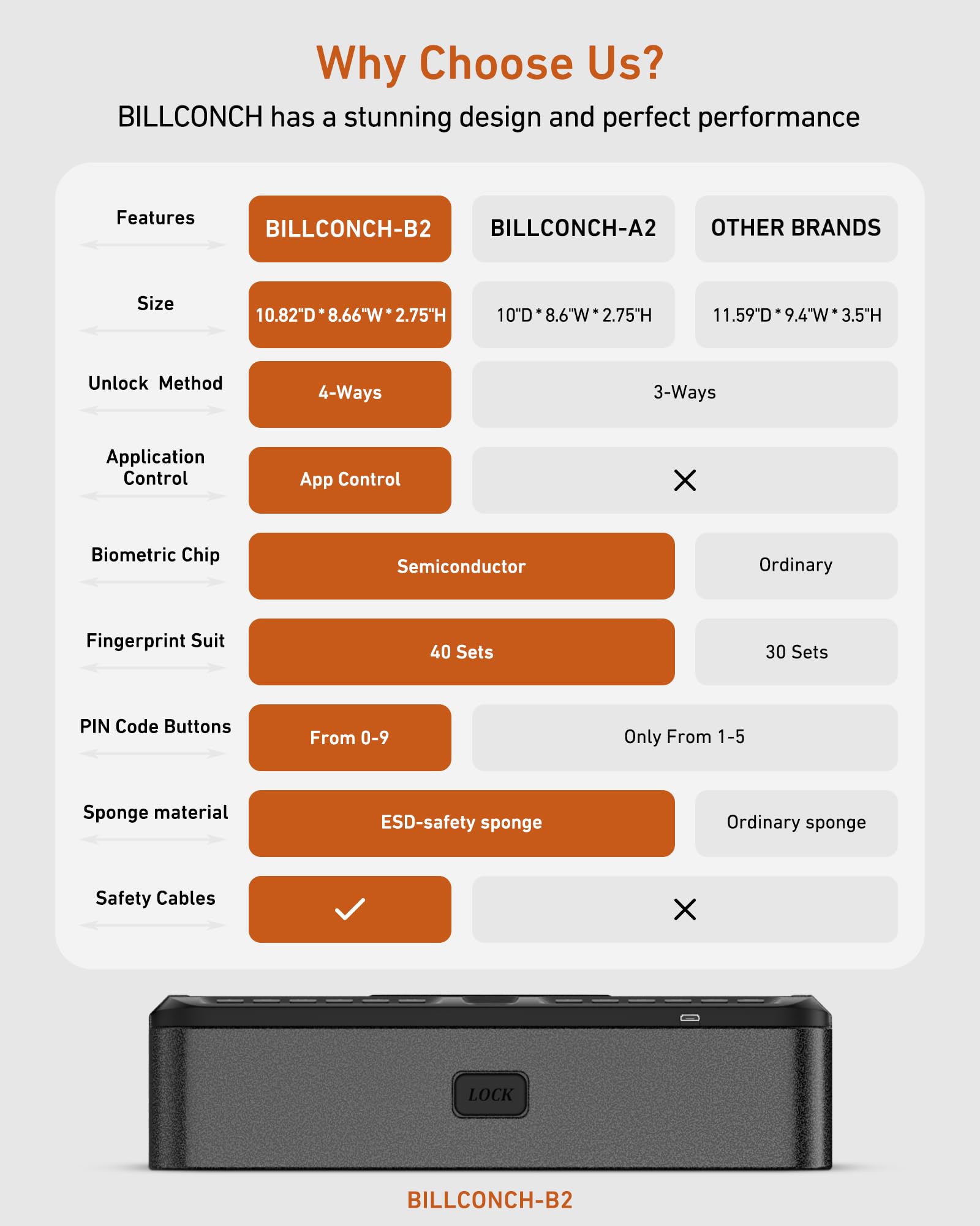 - 5-Star After-Sales Service: We are committed to providing top-notch intelligent gun safes to Protect your home! If you are not satisfied with the quality of the pistol safe product, or the results do not meet your expectations, please contact us through Amazon within the 365-day warranty period and we will provide you with exceptional service and support, including refunds or replacements and more. Rest assured that BILLCONCH's team of handgun safe professionals is always willing to help