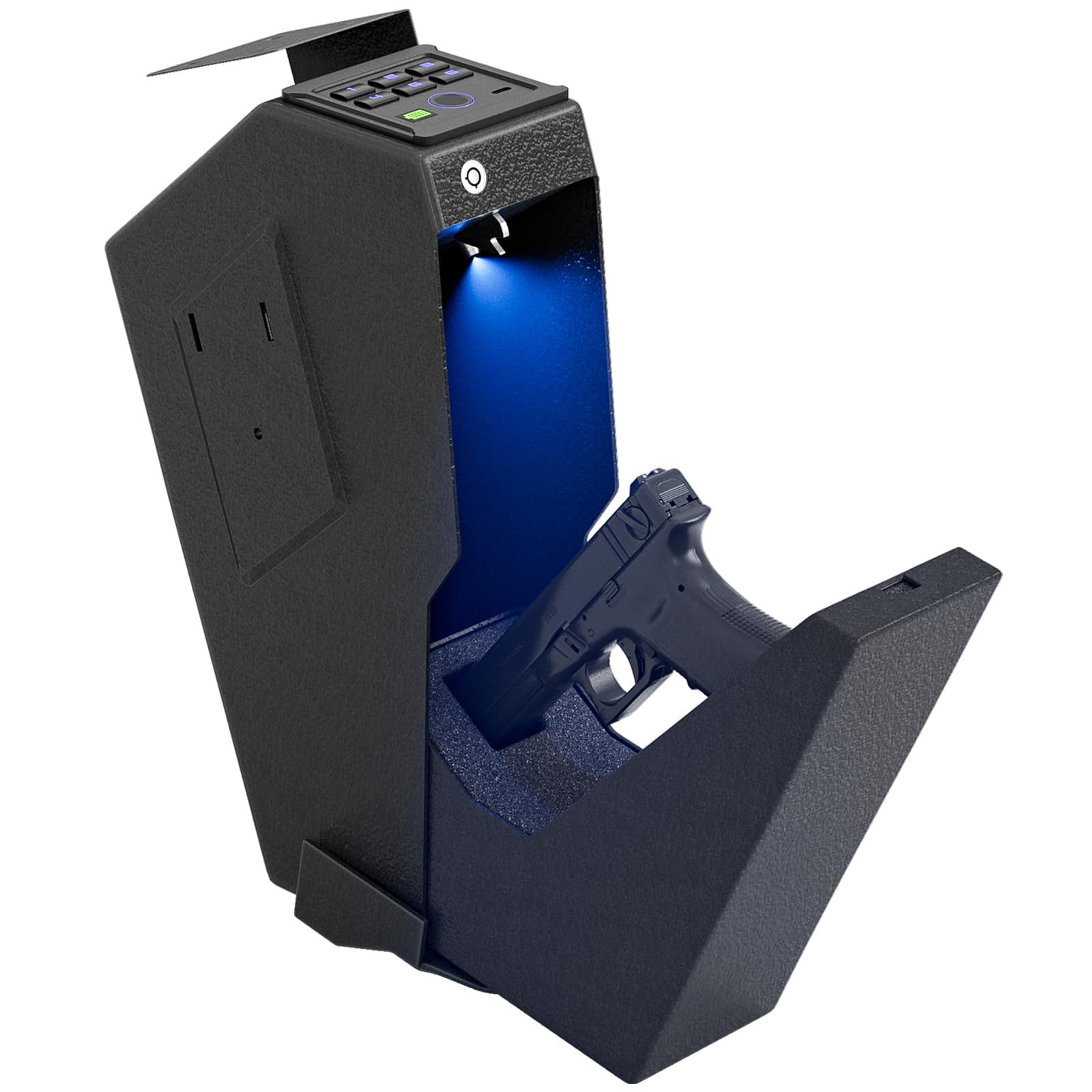 Biometric Pistol Safe LED Light,Quick Access Security Safe with Fingerprint 6-button Backlit Keypad,Auto Open Hidden Hand GunSafe for Bedside Home Nightstand Vehicle Desk (1 GUN UPGRADE)