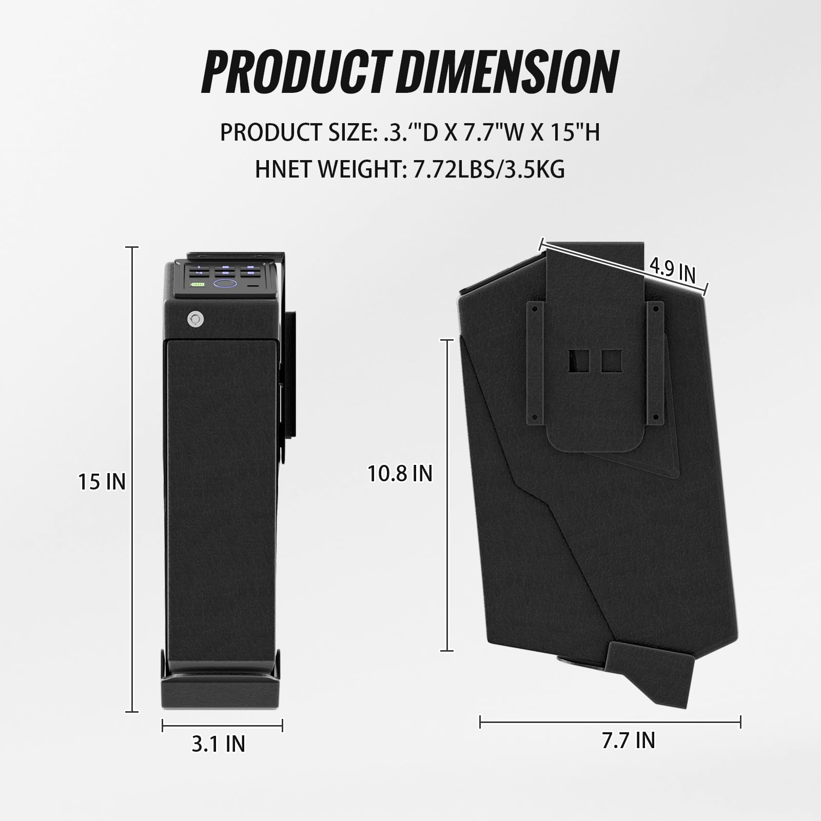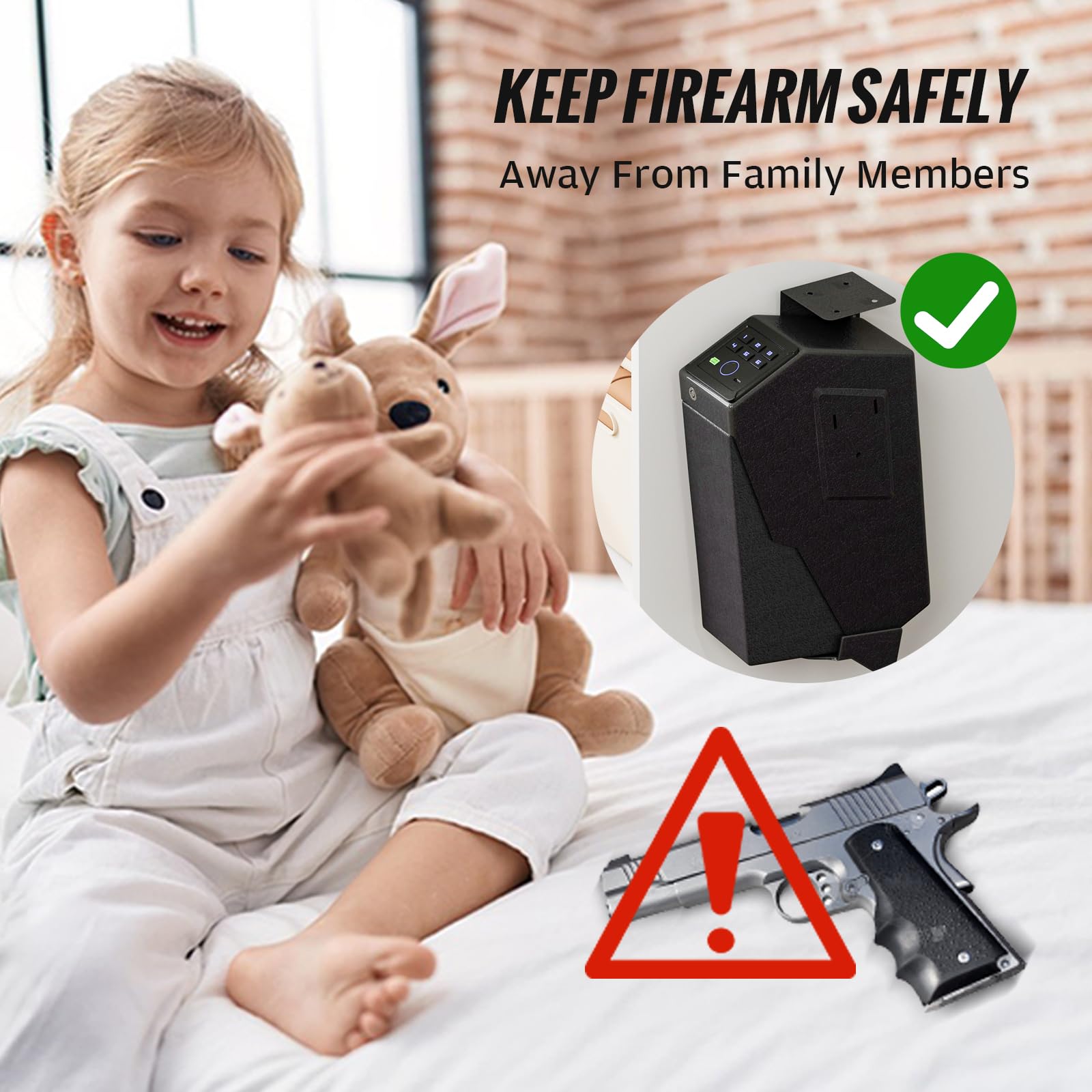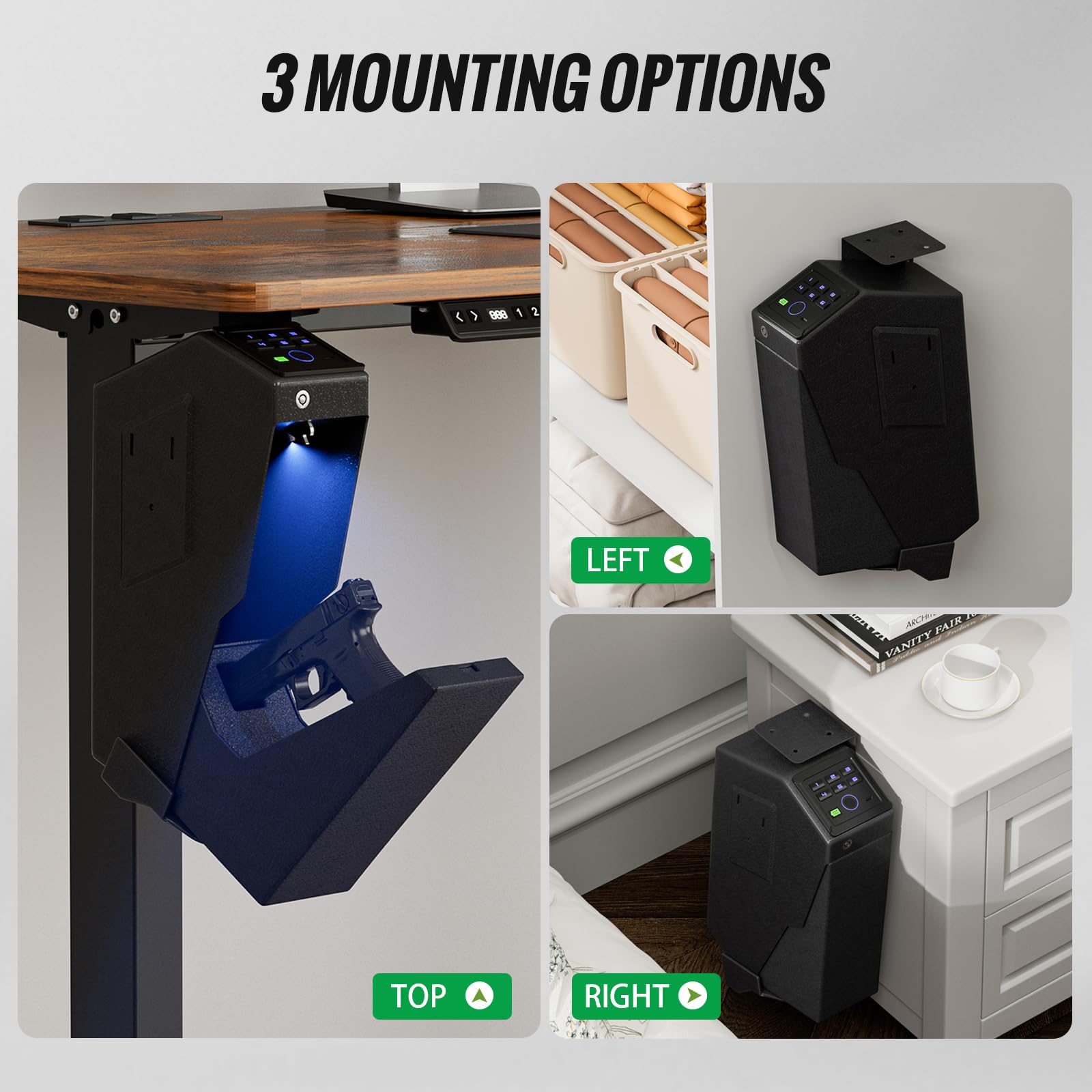 - 【Easy to Mount】This biometric gun safe features a drop-down design with 3 mounting options (left, right, or top), offering versatile placement. Perfect for home, office, or business use, it fits discreetly in nightstands, cabinets, desks, or closets—providing secure storage where other safes can’t