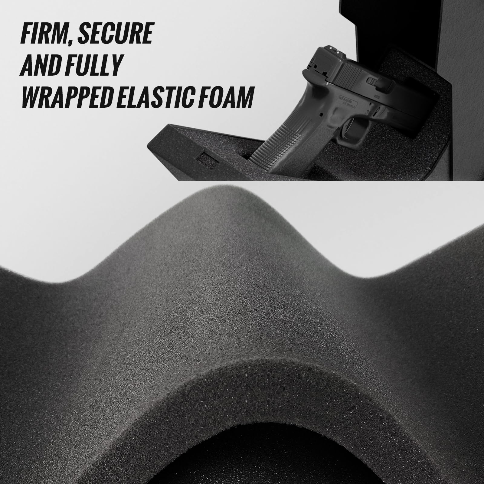 - 【Quick Access】Unlock in 0.1 seconds with fingerprint access! This bedside gun safe offers multiple security options: passcode, backup keys, and storage for up to 30 fingerprints. The quick-drop drawer ensures fast, reliable access while keeping your firearm secure. Convenient and flexible with a 3-6 digit passcode option.Be sure to keep the unlocking key, the gun case can only be opened manually with a mechanical key in a power loss condition