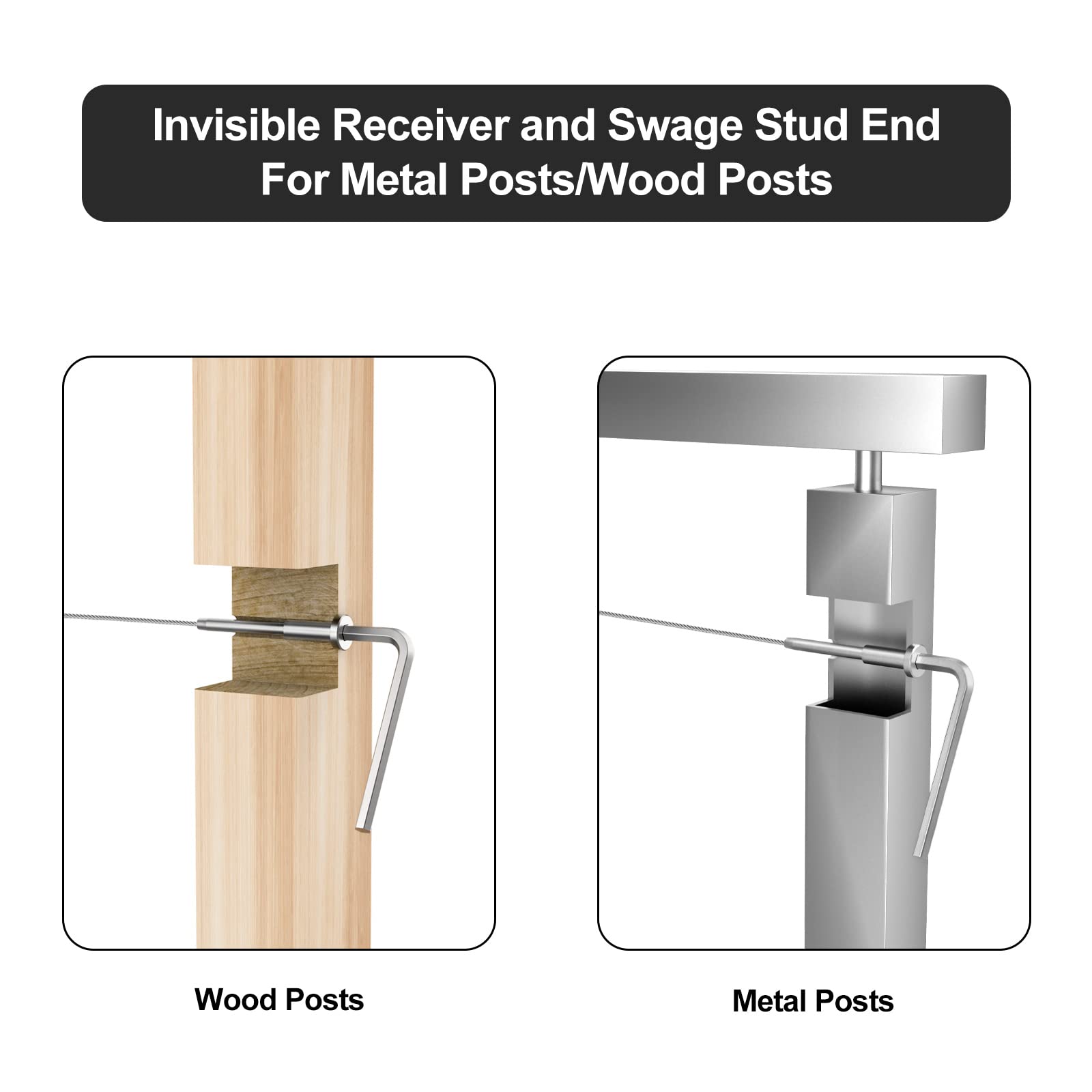 - 【Package List】50 Pack T316 Stainless Steel Invisible Receiver and Swage Stud End. If you're not satisfied with this item at any time within one month of purchase, we'll provide a refund or replacement.