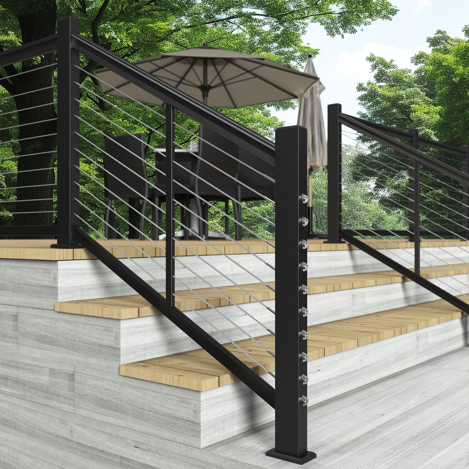 - 【Applications】For 1/8 inch deck cable railing system. It' s suitable for 2"x2" metal and wood posts and applicable for both level and angled sections. Provided a "dead end" for a DIY cable railing project, can be used on all sorts of posts in wood or metal. Perfect for installation on exterior decks, marine rigging, or interior applications. When using invisible cable railing system on a stairway or other angle application, we recommend using 5/16 ID 30 degree angle washer:B0BXD6YDLN.