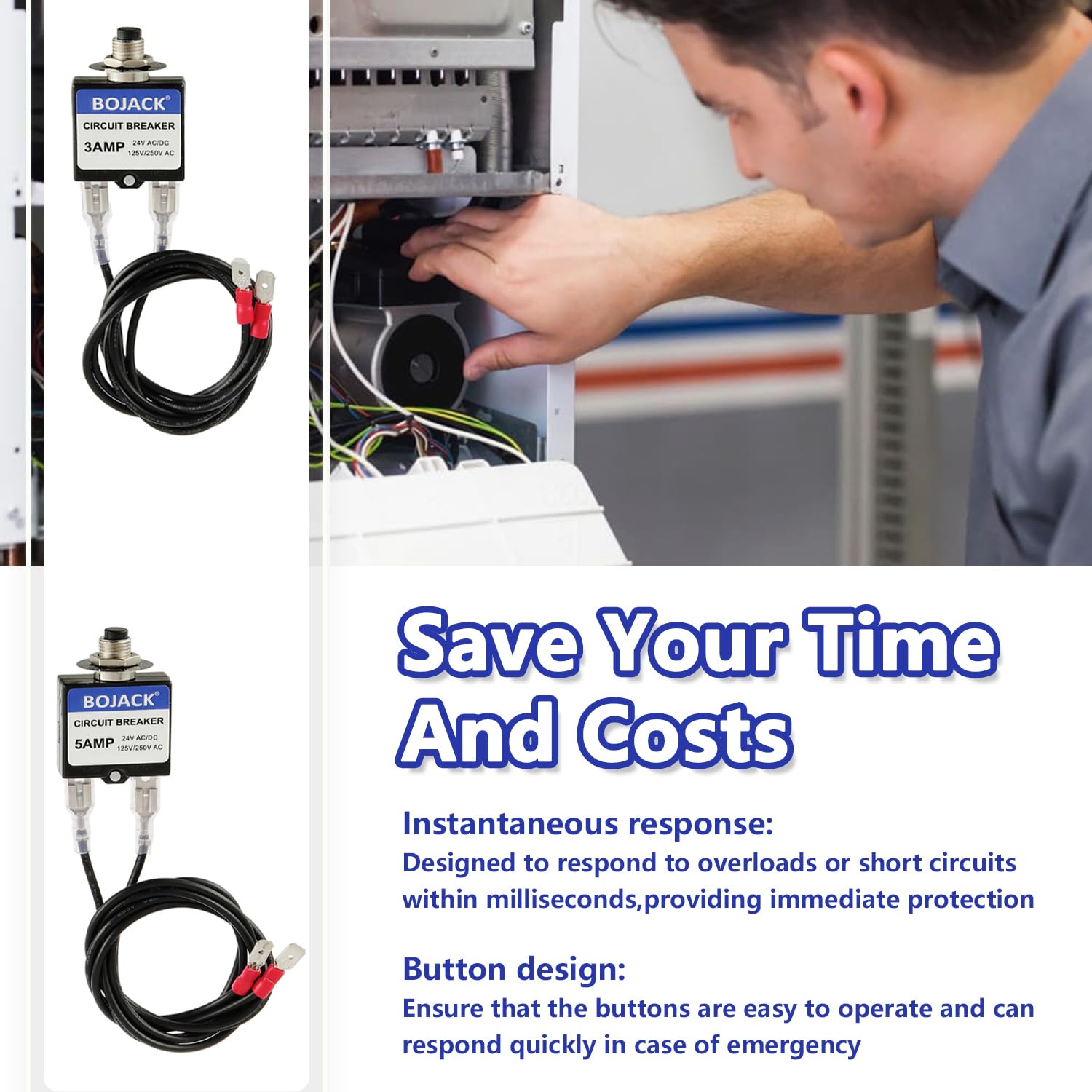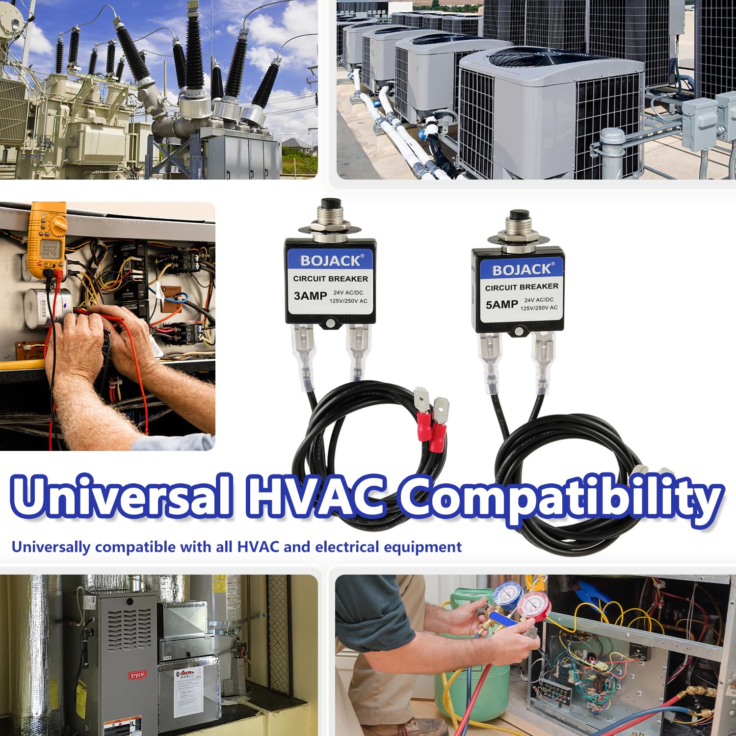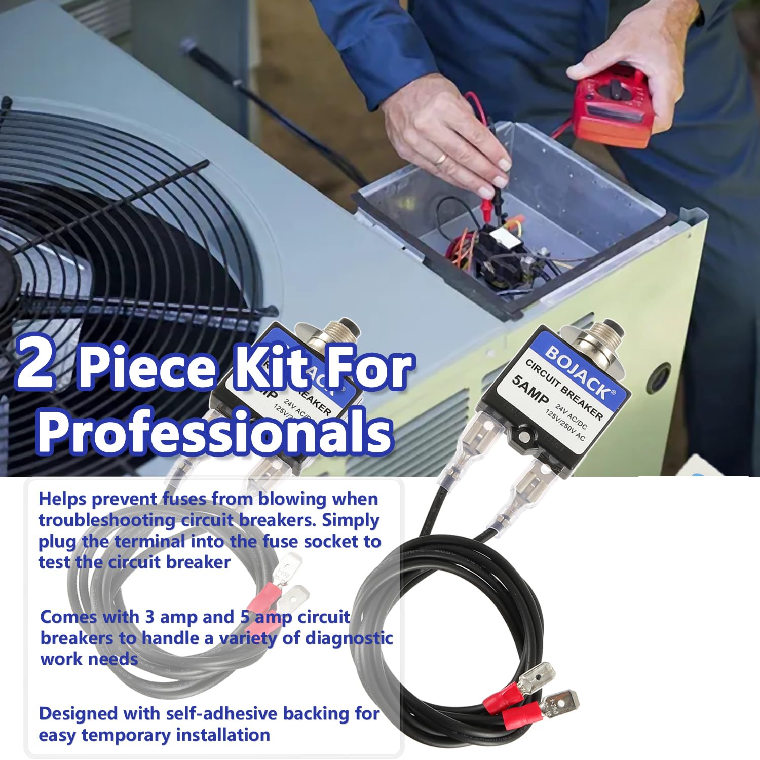 BOJACK 3 Amp 5 Amp Resettable Fuse HVAC Tools Circuit Tester for Circuit Breaker 24V AC/DC & 125/250V AC