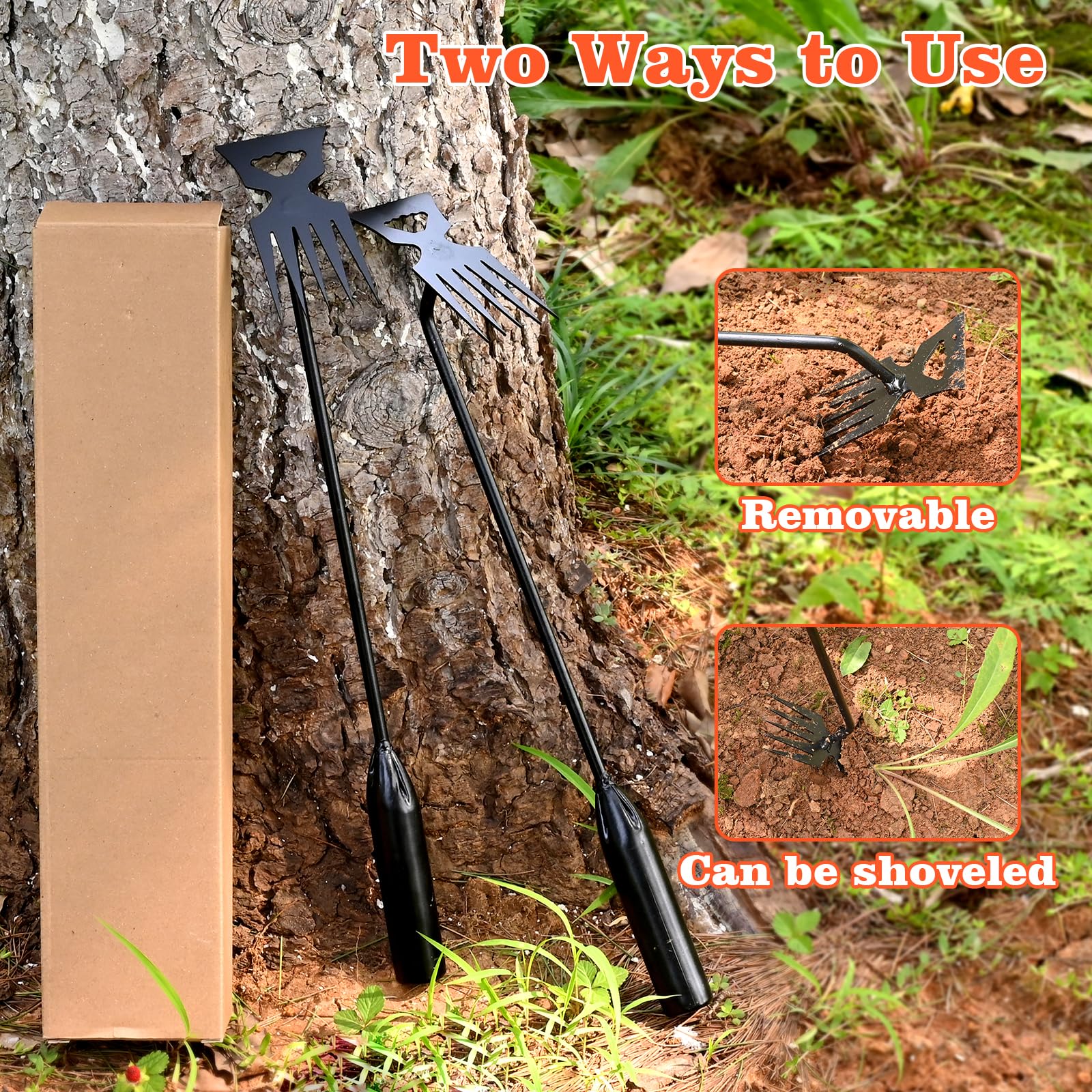 BokingOne Weed Puller Tool Garden Weed Pulling Tool, 4-Tine Manganese Steel Weeder Tool - Black Coated Forged Portable Garden Hand Weeder for Farm, Orchard & Garden (2Pack)