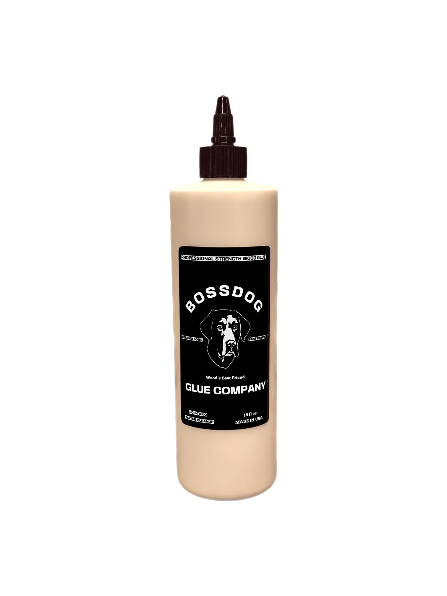 BOSSDOG Wood Glue, Professional Strength, Fast Drying, Cutting Board Safe, Natural tan Color. DIY, Beginner Carpentry, Woodworking, Furniture Repair, 16oz. Large Bottle. Made by a Maker, for Makers