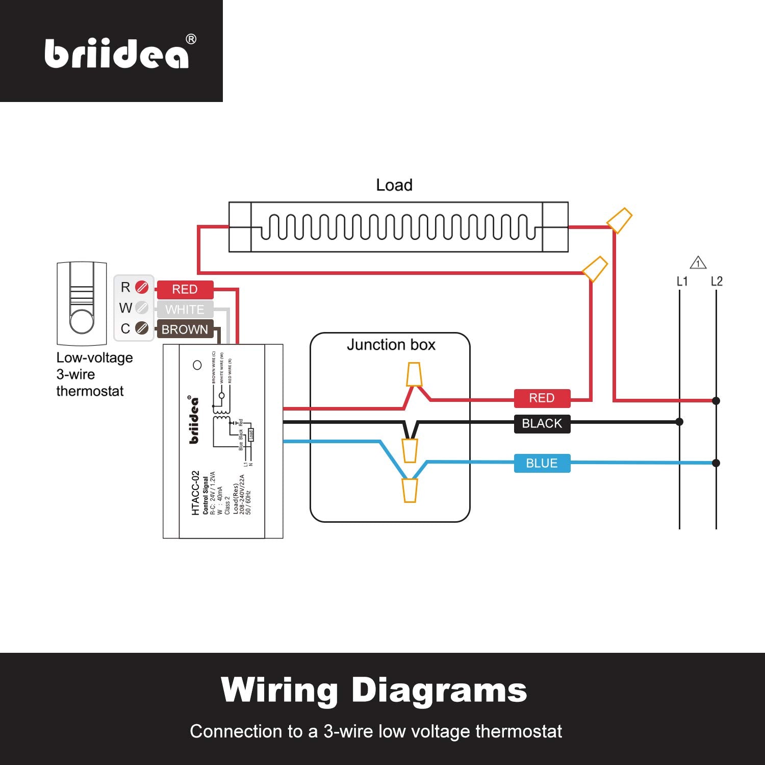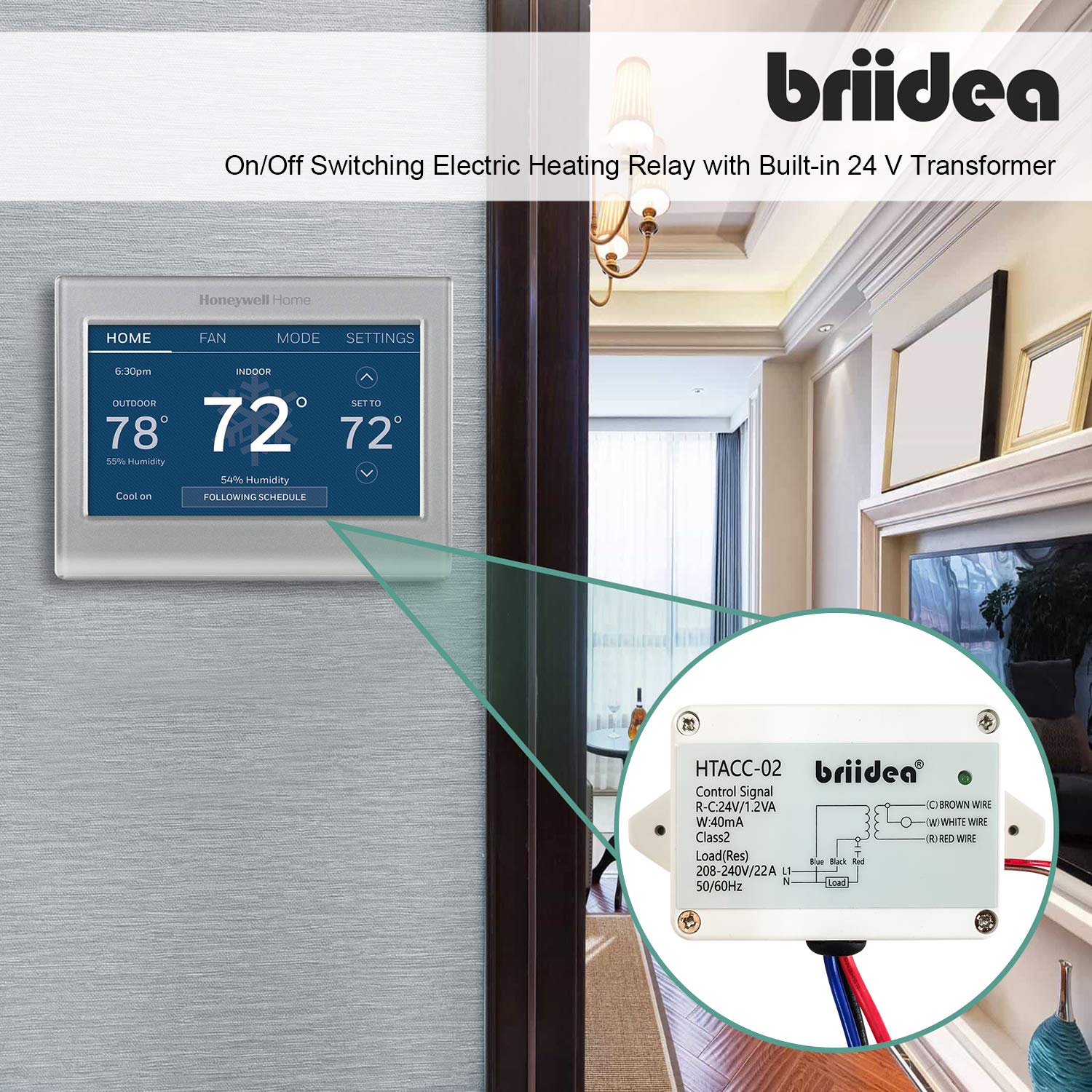 Briidea 220V/240V On/Off Switch Electric Heating Relay with Built-in 24V Transformer, Replacement for Any Relay, Compatible with 24V Thermostat