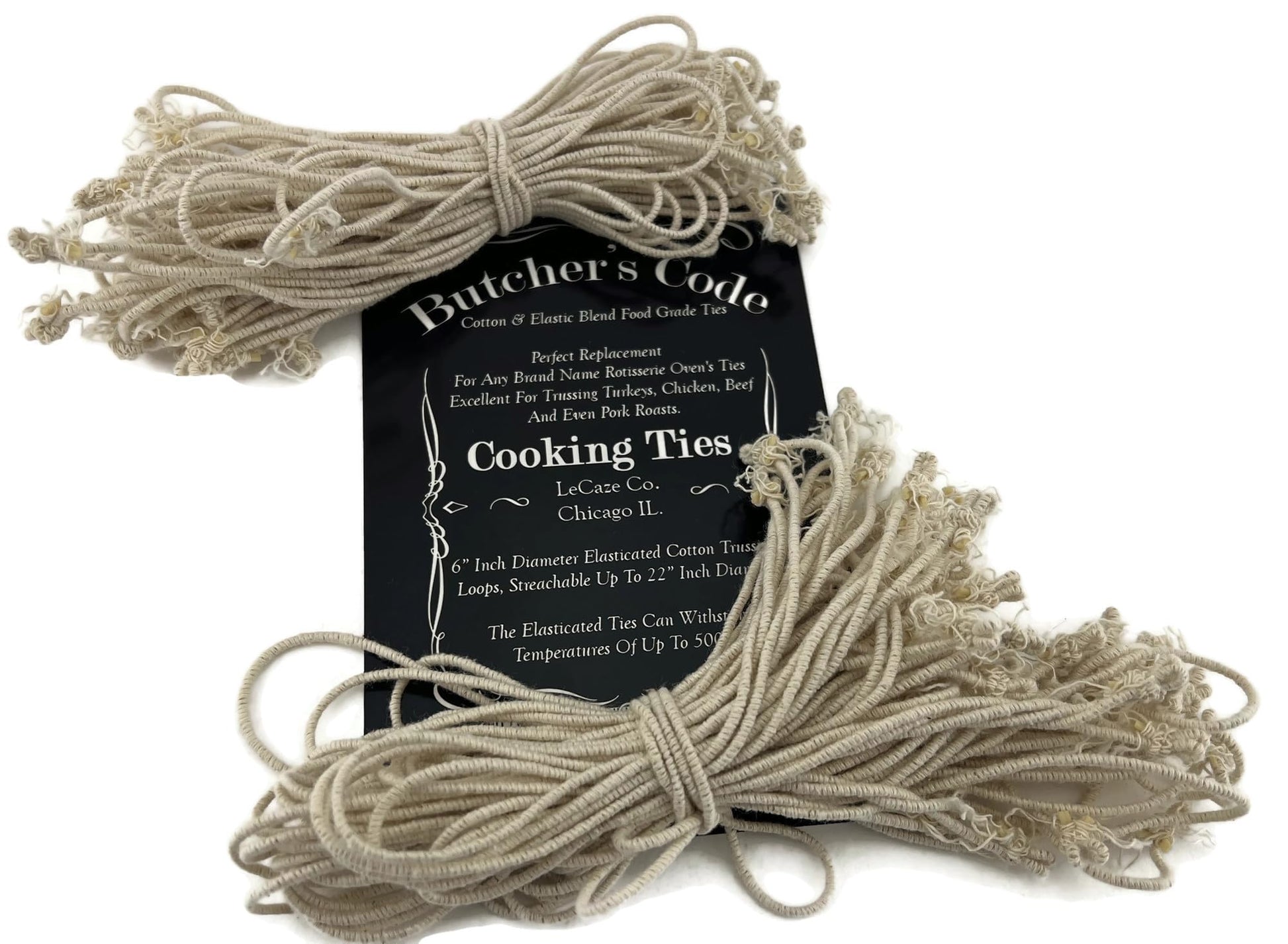 Butchers Code Rotisserie Cooking Ties – 50 Heat-Safe Cotton Elastic Loops | Trussing Twine for Chicken, Turkey, Meat, Roast, Grill, Oven Use