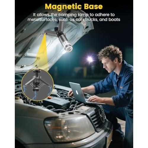 Camping Lantern Telescopic - Camping Light with 12000mAh Battery Magnetic Base, 3 Light Modes, Waterproof Rechargeable LED Hiking, Emergency, Outdoor & Indoor Use