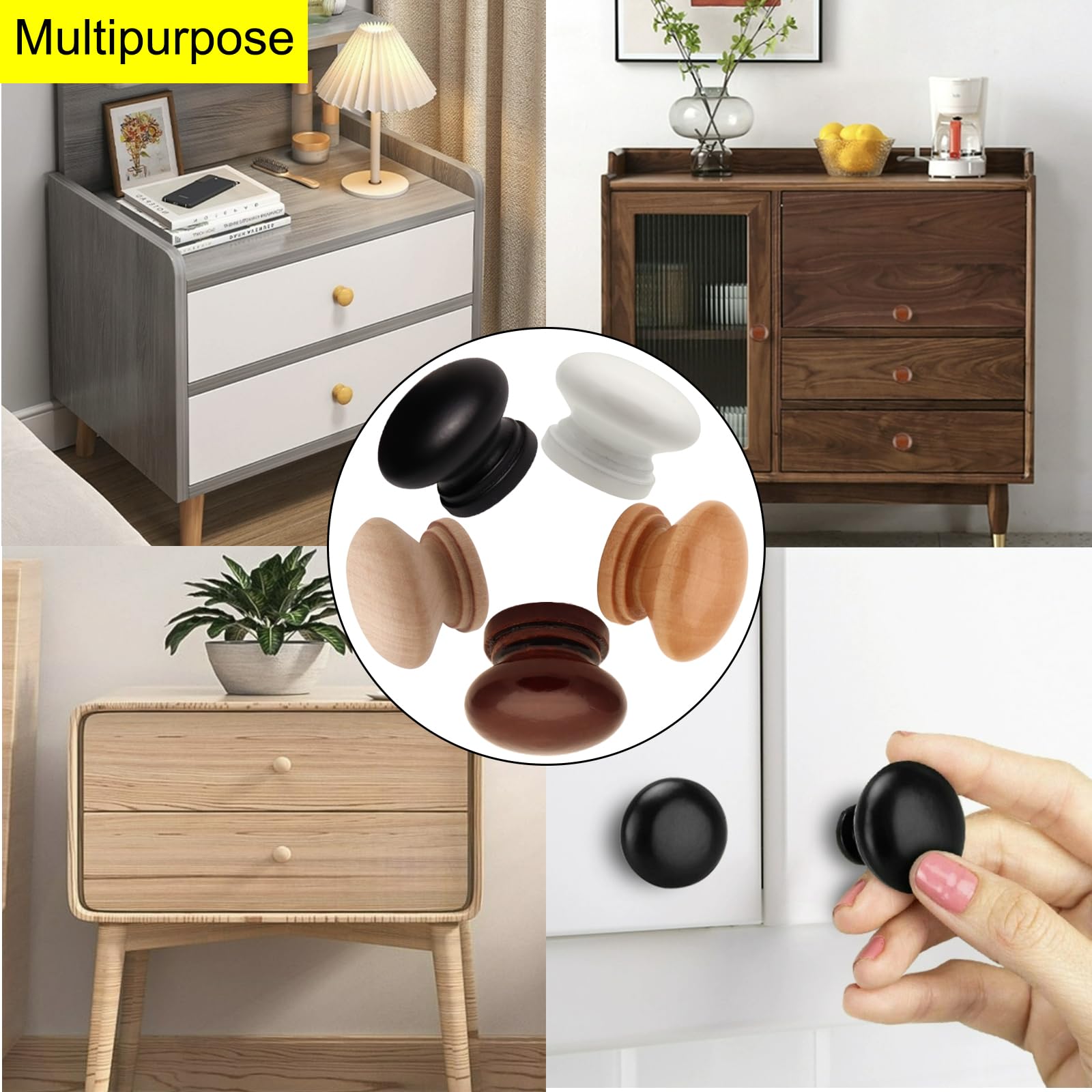 - Natural Wooden knobs: Wooden Drawer knobs are made of high quality solid wood and are available in 5 colors: brown, white, log varnish, black and unfinished.