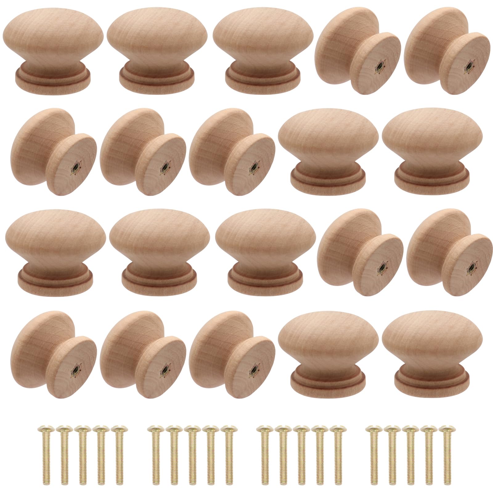 Cangder 20Pcs Wooden Cabinet Knobs Unfinished Wood Knobs for Dresser Mushroom Drawer Knobs Pulls Handles (1.3" Dia., 1" Height, with Screws)