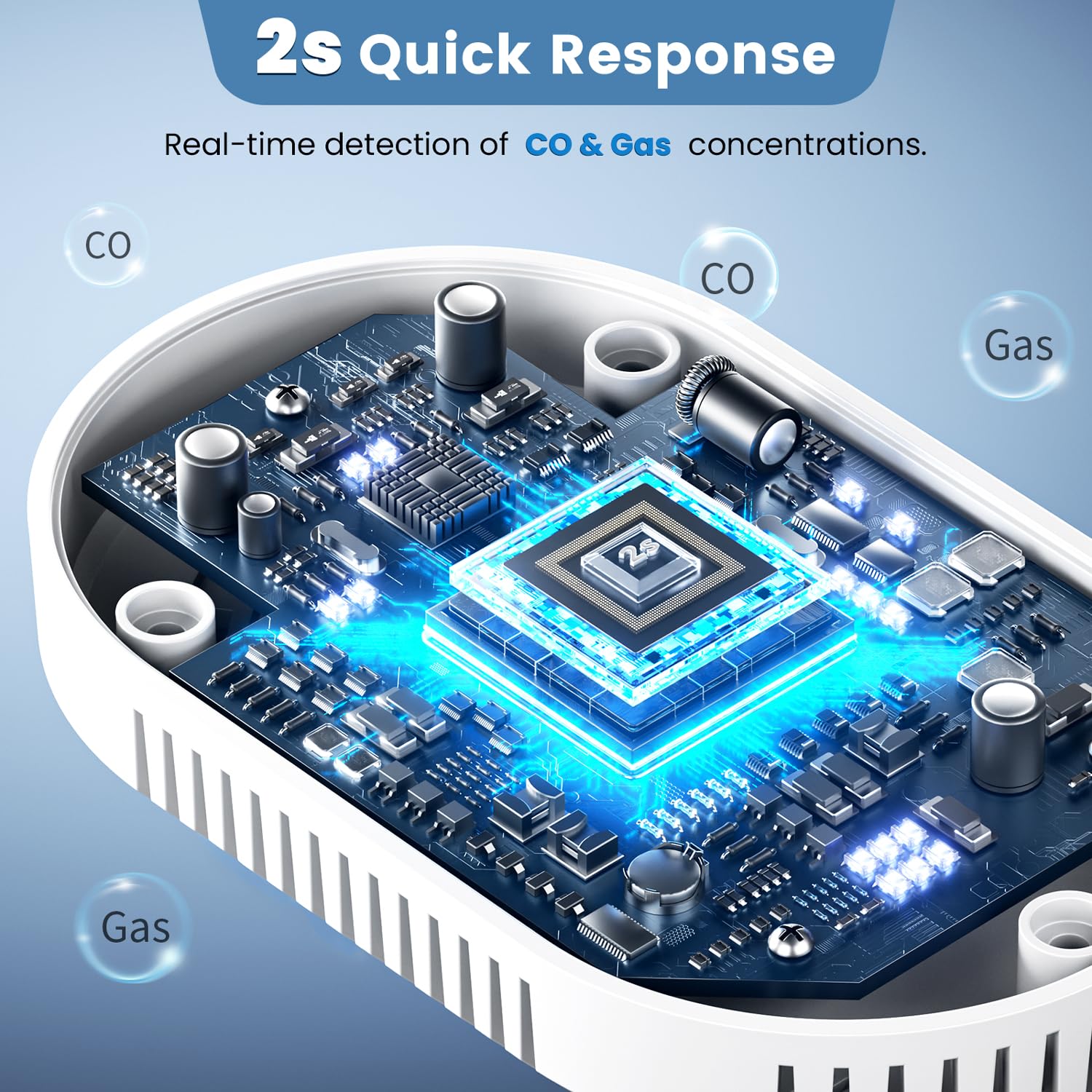 Carbon Monoxide Detectors,Plug in CO and Natural Gas Detector, Combination Gas & Carbon Monoxide Detectors for Travel with Temperature Humidity Display, 4 in 1 CO & Gas Detector for Home/Travel-Black