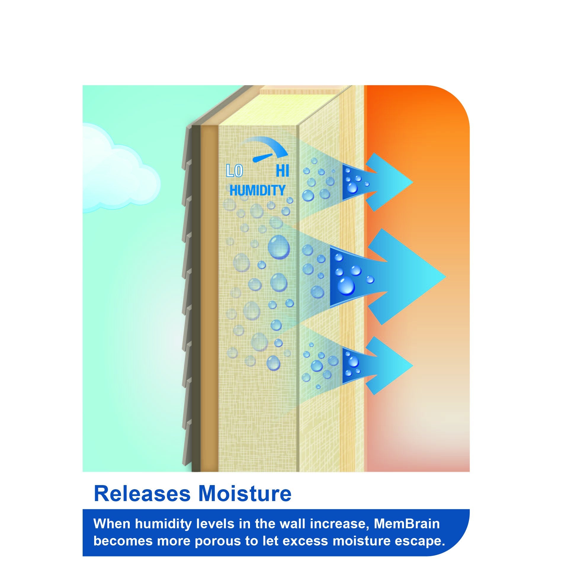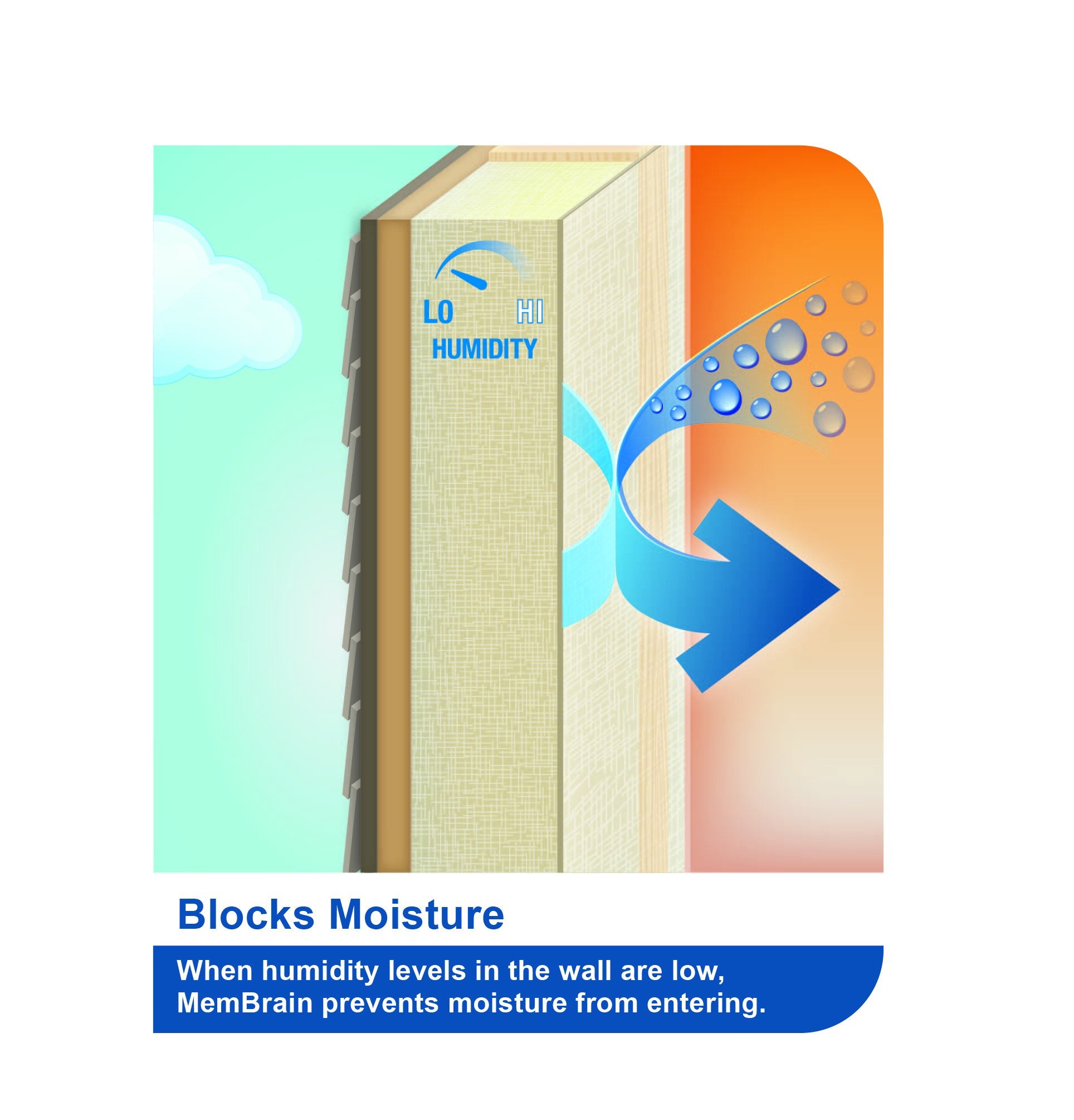 - Unlike traditional vapor retarder, membrain senses and adapts permeance to varying humidity throughout the year to keep the wall cavity dry