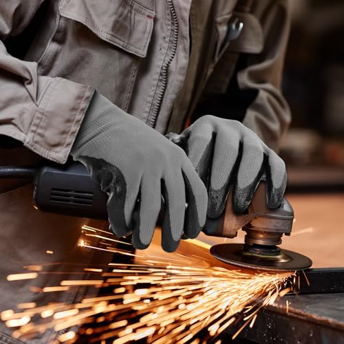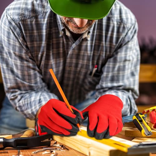 Chuarry Safety Work Gloves Rubber Coated Knit Nylon Working Gloves Bulk for Men Women Gardening, 2 Colors, 9.1"