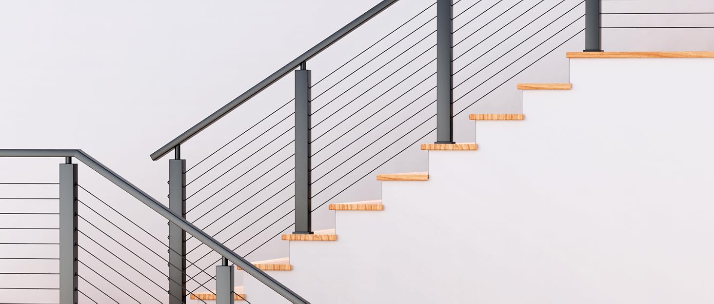 - š¦ćClean Finished LookćThese cable protector sleeves fits 1/8" cable railing wire rope for wood/composite posts, provide a sleek and stylish look to your cable railing project. Featuring a minimalist design, they add a touch of elegance and sophistication to any deck or staircase, elevating the overall aesthetic of your space. These stainless steel protective sleeves can prevent cable from wearing into post, and keep to maintain cable rail tension for preventing wire rope vibration.