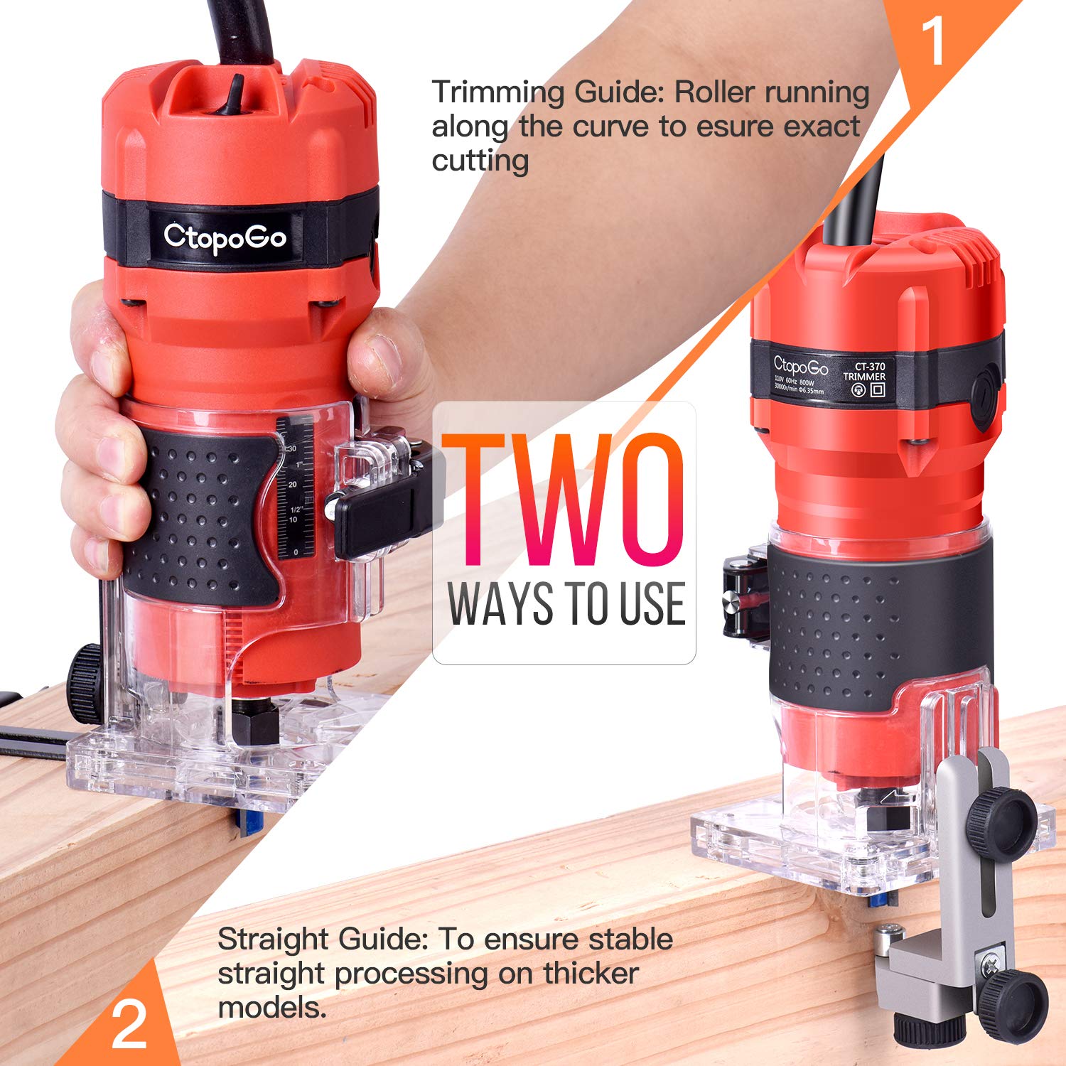- 【Easy to Operate Compact Wood Router】- This CtopoGo Compact Router Tool Wood Trimmer applicable under normal ambient conditions, equipped with the right rotary. Transparent cover to control the flying sawdust. Can clearly observe the processing conditions. Transparent base design is great for accuracy easily recognizable in processing. The scale is clearly visible, easy to operate.