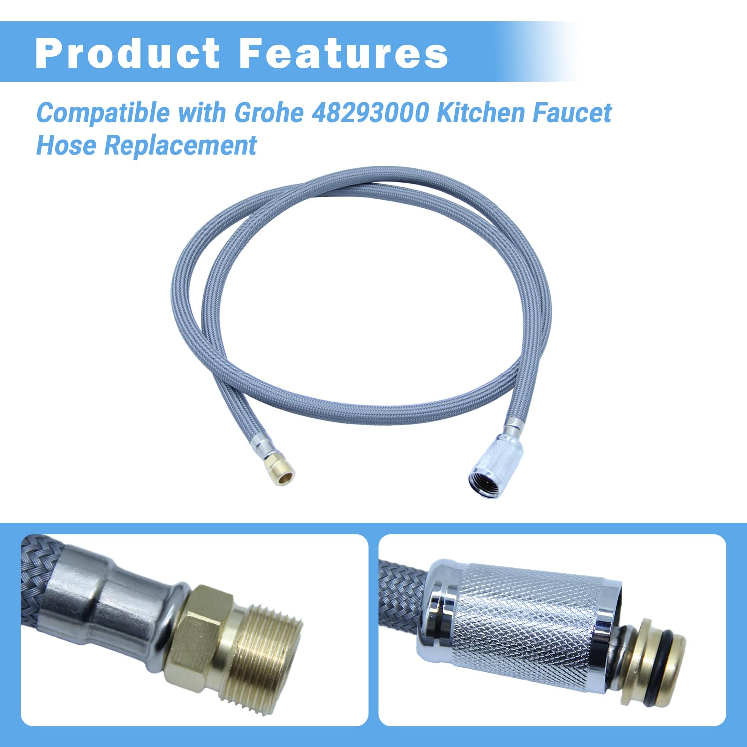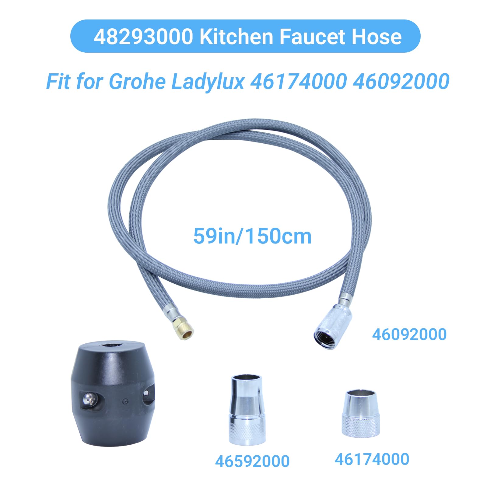 - Universal Compatibility for Grohe Models "Designed for Grohe 48293000, 46174000, and 46092000 kitchen faucets, this 59-inch pull-out hose ensures a perfect fit. Upgrade your sink with a reliable kitchen faucet hose replacement for seamless performance."