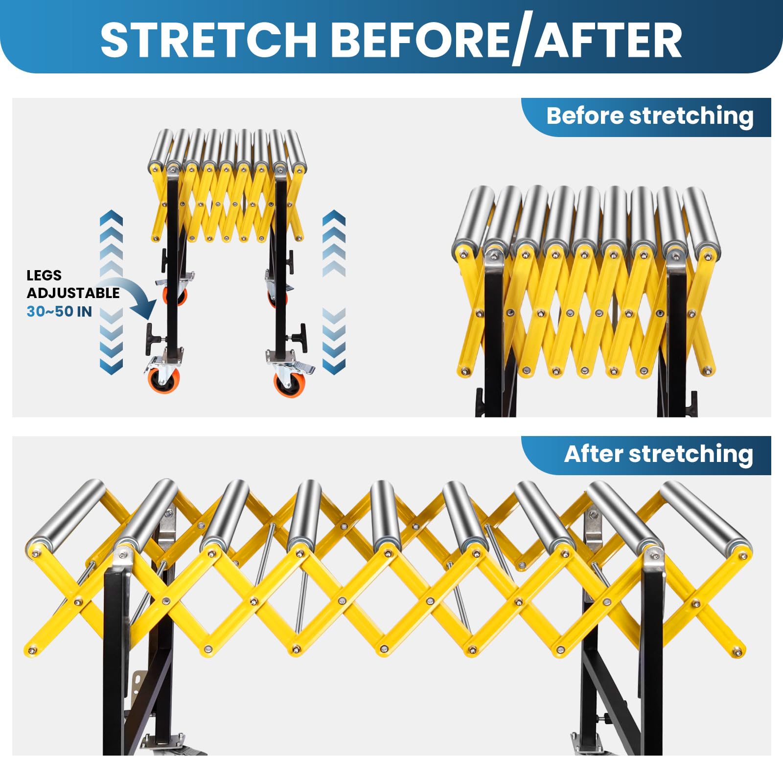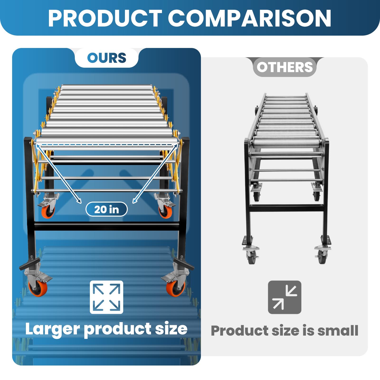 - 🌱Smooth 23.6" Wide Rollers: The wide roller design provides low-friction movement, improving safety and efficiency for heavy items across your assembly or order prep line.