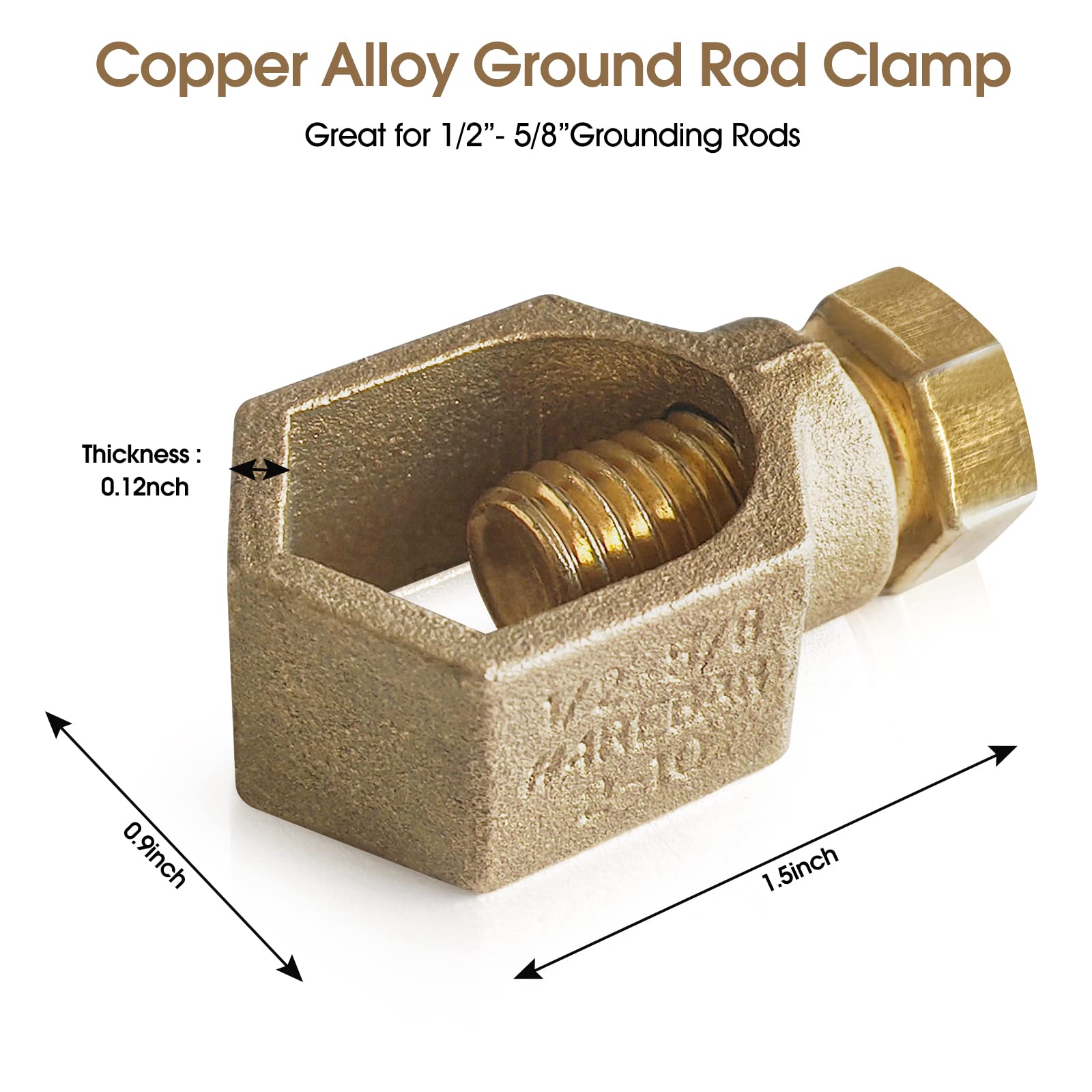 - Material: Copper ground rod clamp with galvanized bolt, standard duty. Maximum service and conductivity. to provide a solderless connection between ground wire & ground rod.