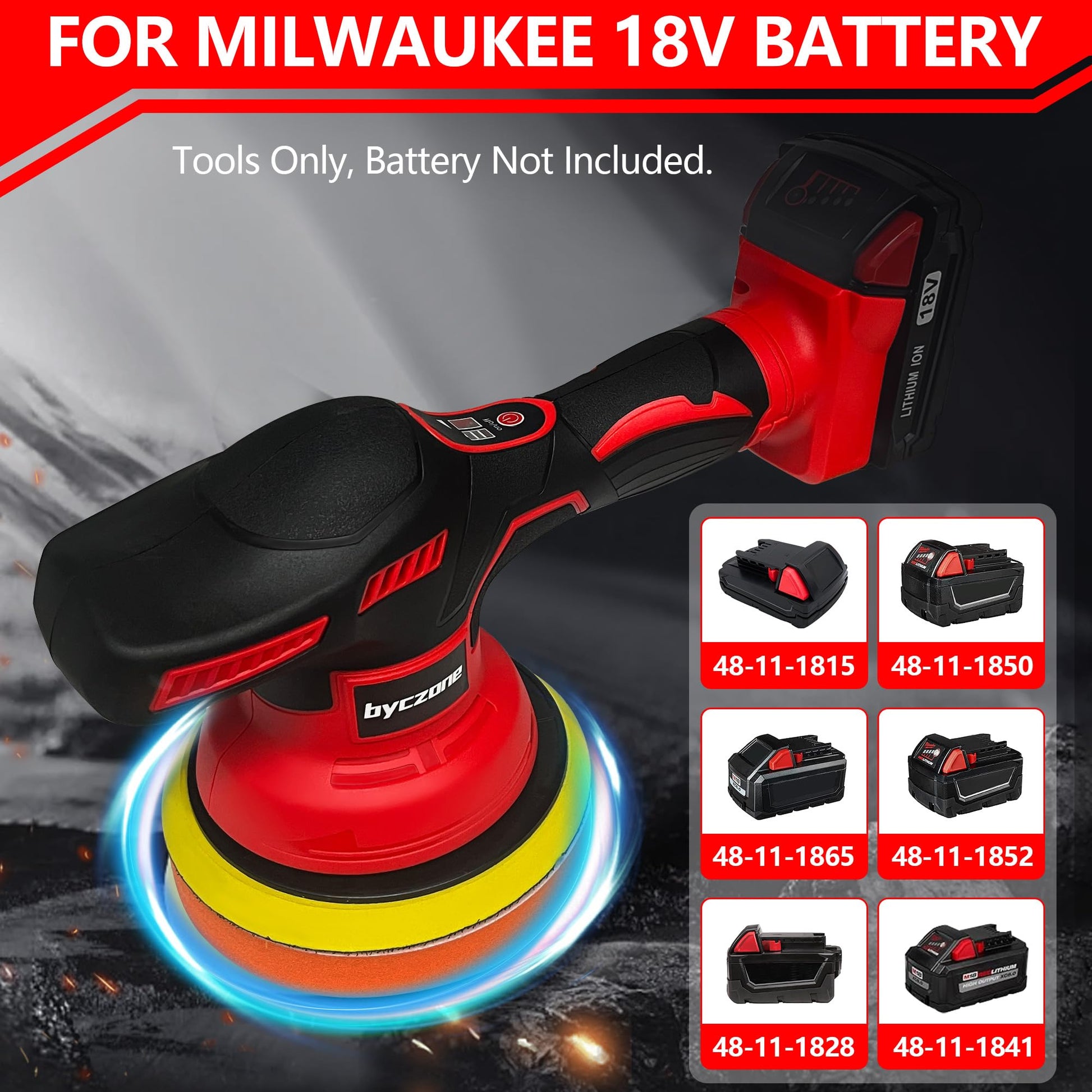 - 【COMPATIBLE WITH MILWAUKEE BATTERY】---This cordless buffer polisher is compatible with Milwaukee 48-11-1820 48-11-1822 48-11-1840 48-11-1841 48-11-1828 48-11-1850 48-11-1852 48-11-1860 48-11-1862 48-11-1880. We want you to buy our products based on the fact that you already have the original battery. Please note that this is for the tool only and does not include the battery.