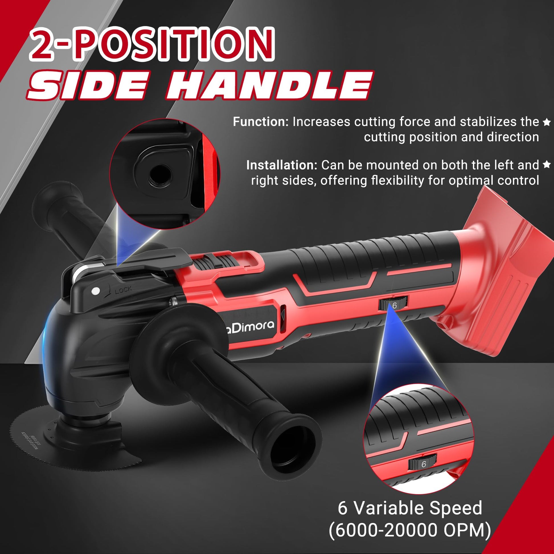 - 【Efficient Brushless Motor and Variable Speed Adjustment】Our oscillating multi-tool is equipped with a high-efficiency brushless motor, offering 6 adjustable speed settings, with oscillation speeds ranging from 6,000 to 20,000 OPM (oscillations per minute). Oscillating tool is suitable for a variety of tasks, such as cutting, sanding, and scraping, meeting the demands from fine to heavy-duty work.