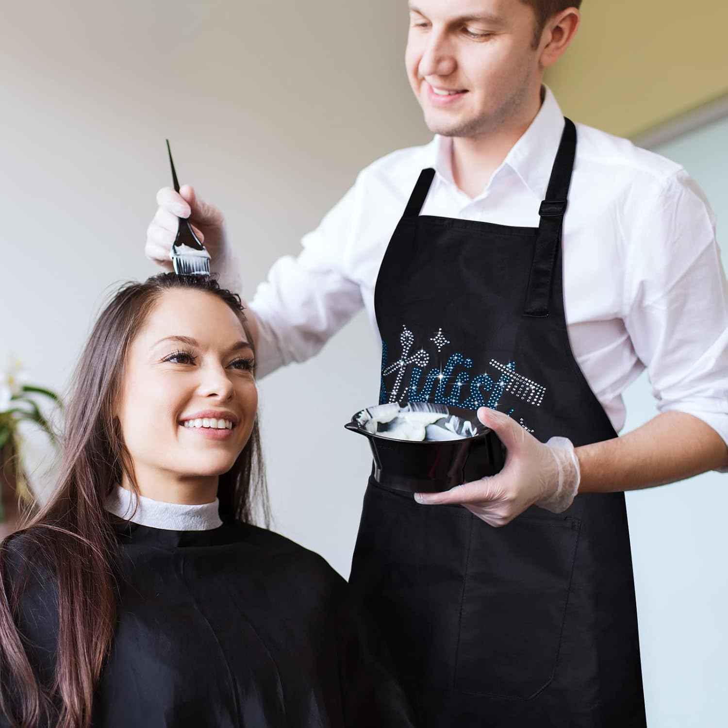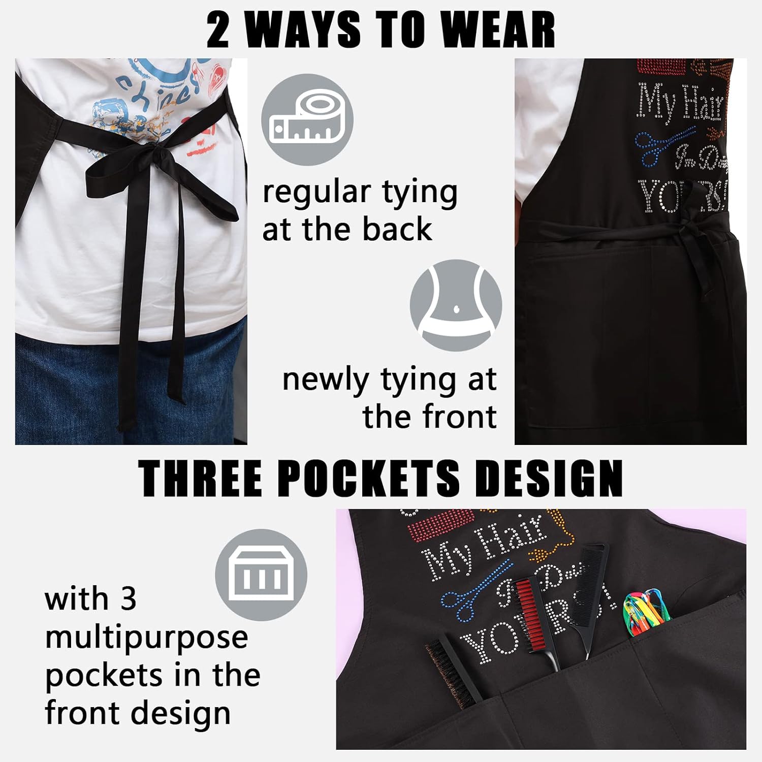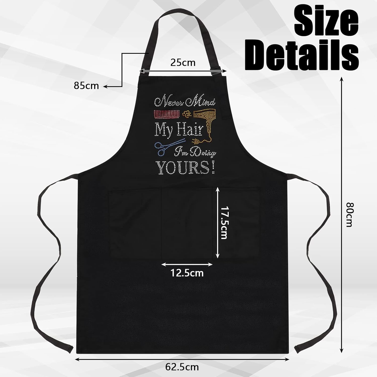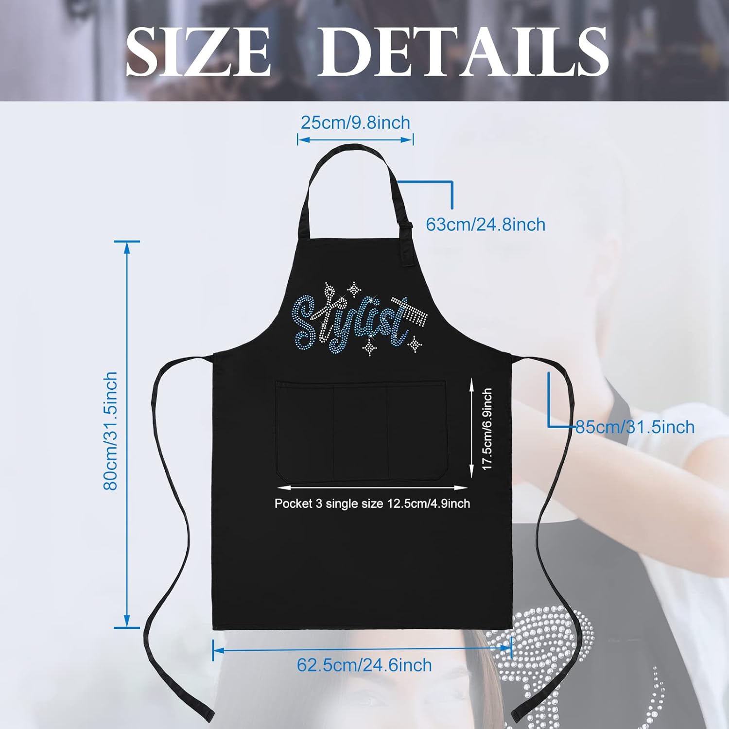 Coume 2 Pcs Hair Stylist Apron Hairstylist Salon Apron with Rhinestone Tools 3 Pockets Waterproof Hairdresser Barber