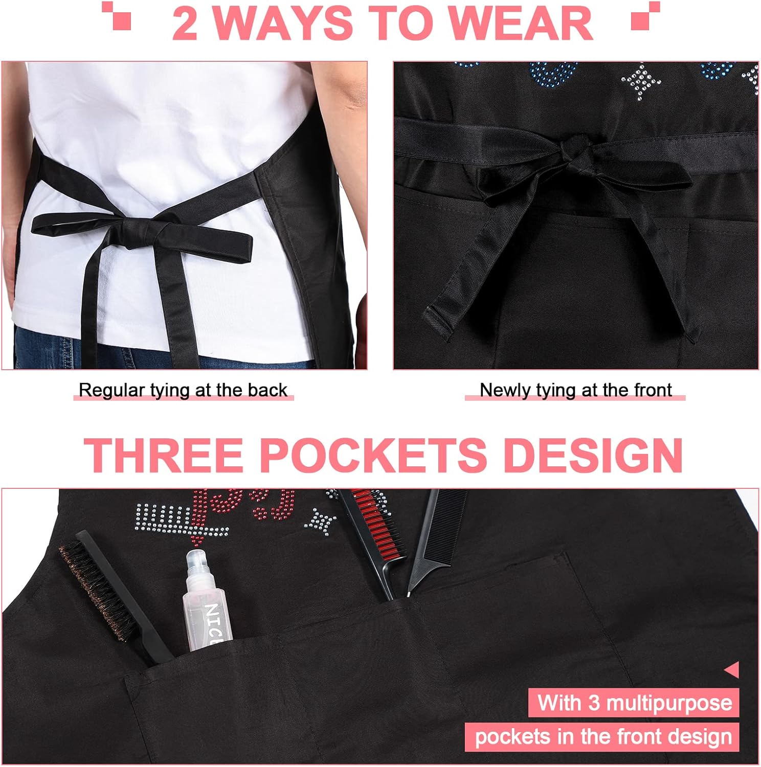 - Reliable quality: the hairdresser barber aprons are made of waterproof cloth and decorated with rhinestone patterns, which is soft and comfortable to wear, reliable in quality and long-lasting o use; They are easy to clean and machine washable, bringing lots of conveniences