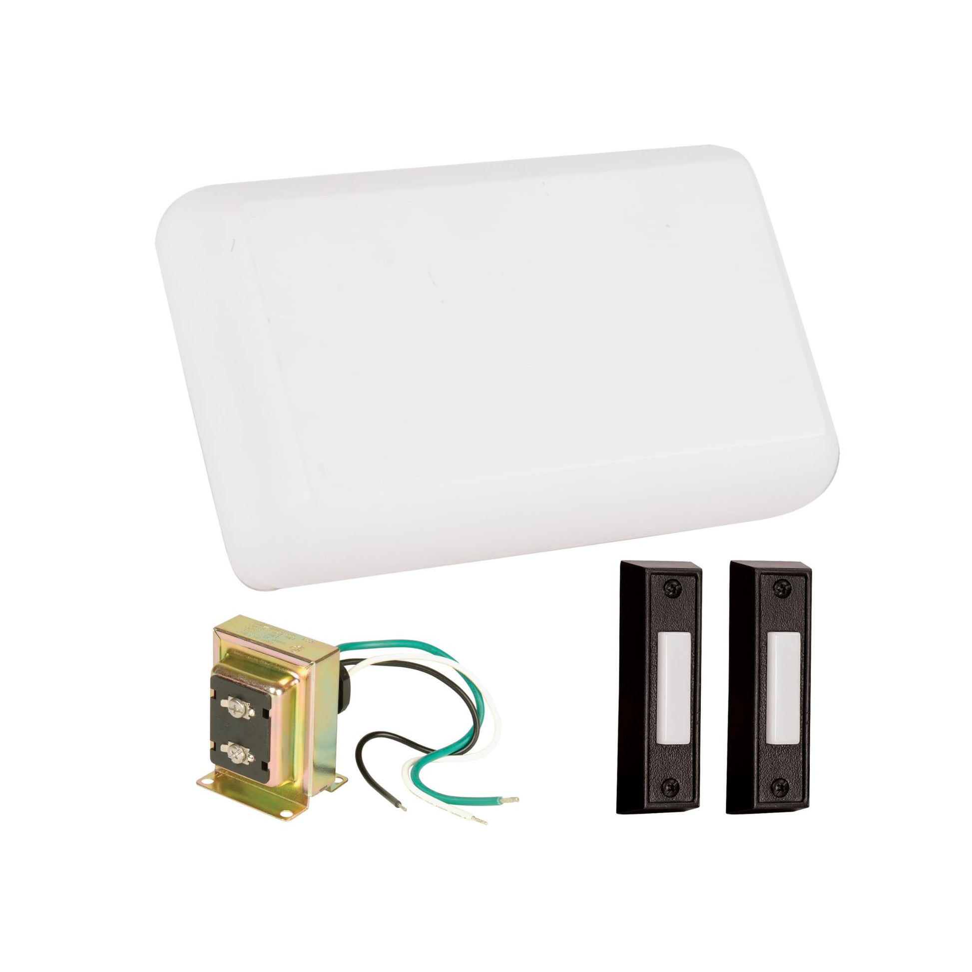 Details: CK1001-W White Chime Kit with 1 transformer, 1 chime, 2 black buttons Transitional