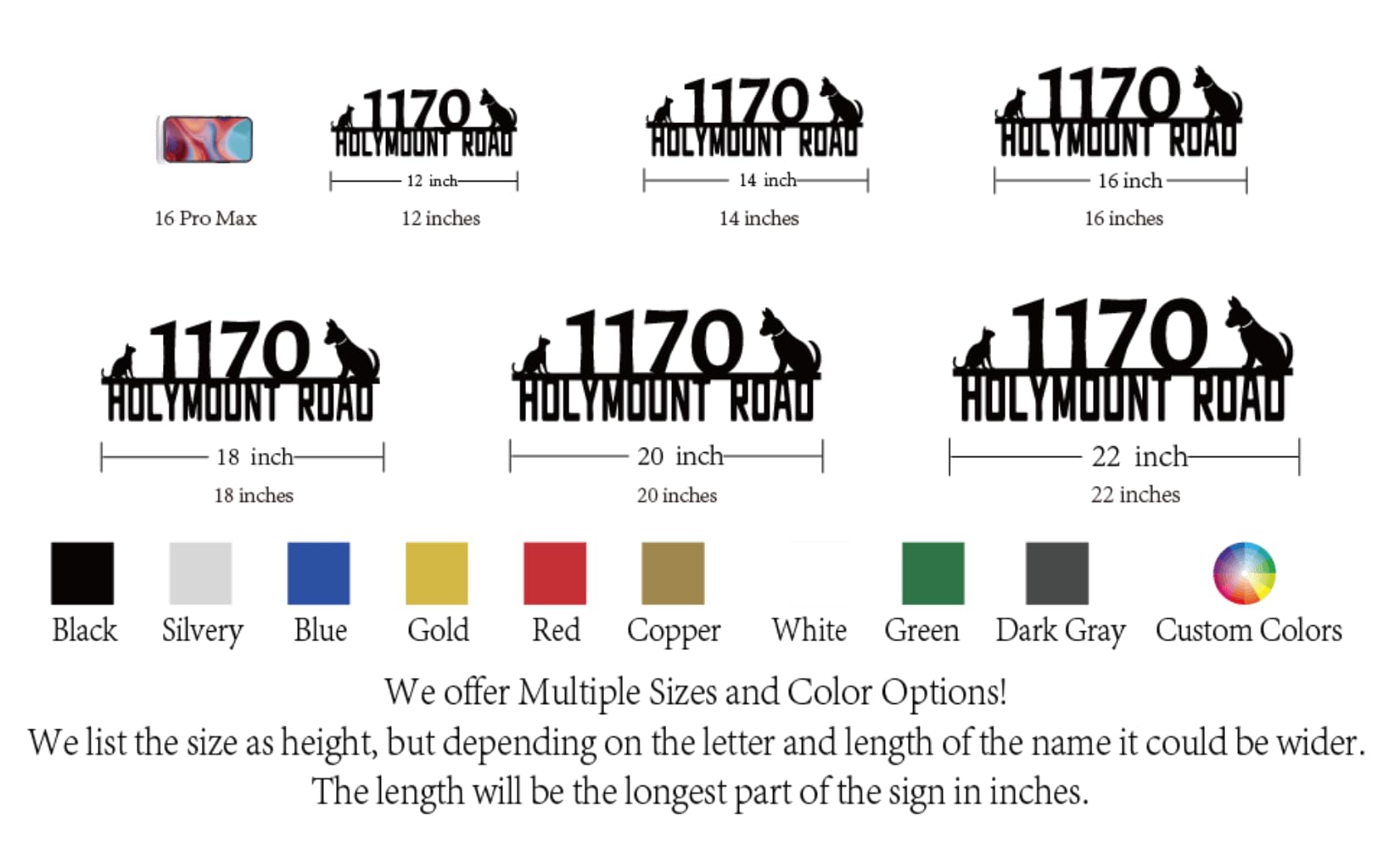 Our Address Signs Are Custom Made With Our Top Of The Line Technology. They Are All Powder Coated 18 Gauge Steel Which Ensures Long Lasting Durability With A Smooth Finish.