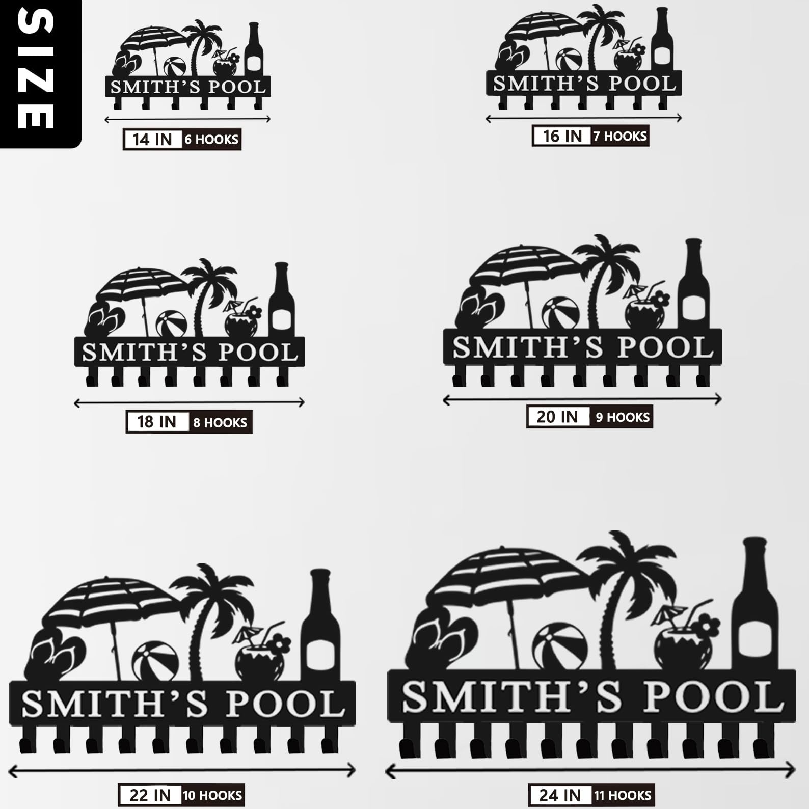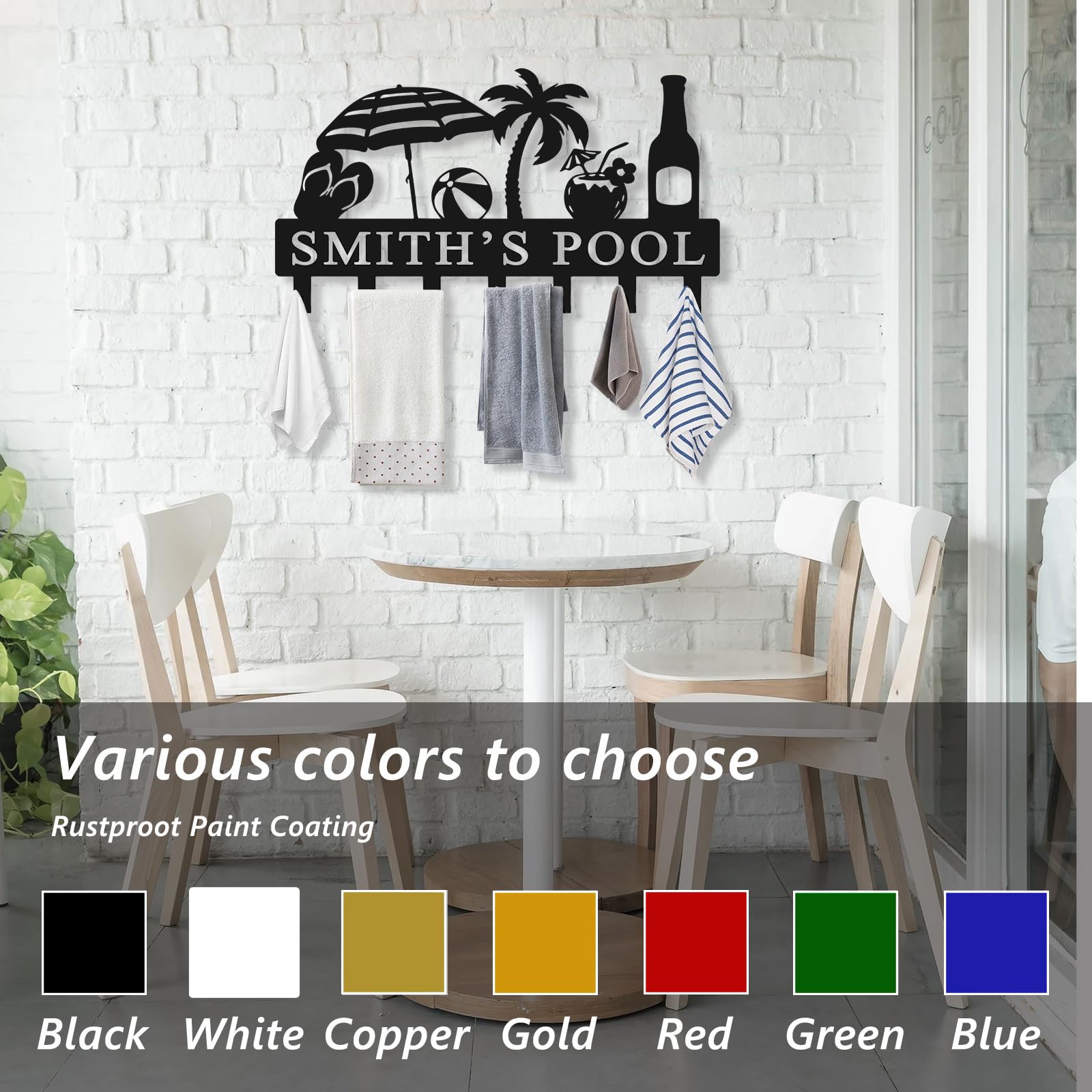 - Personalized Pool Towel Rack - Just Click "CUSTOMIZE NOW" and enter the family name last name on this metal key holder for wall, adding a unique touch to your home decor. This towel rack wall mount not only adds beauty to any interior space in your home, but it also makes a one-of-a-kind collectible