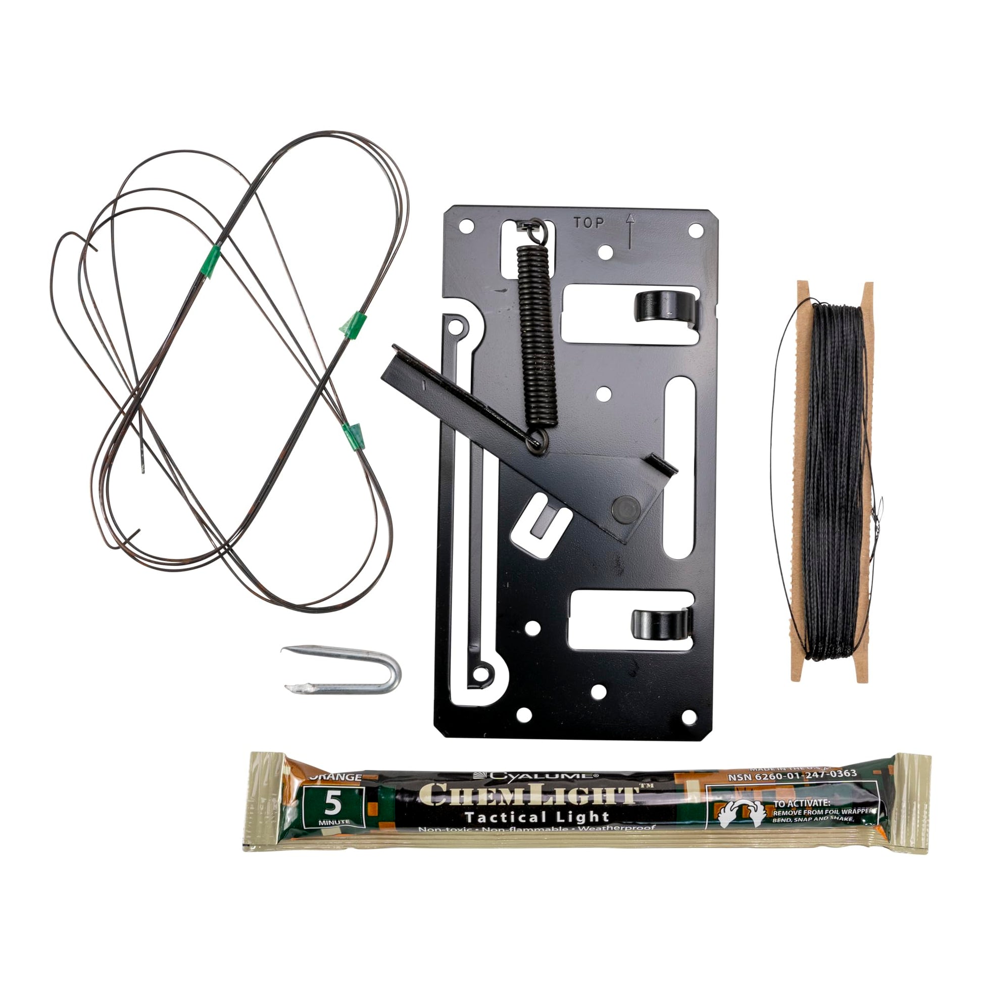 - REUSABLE PLATE - The re-usable plate, when triggered by a trip wire, activates a 6” ultra high-intensity lightstick.
