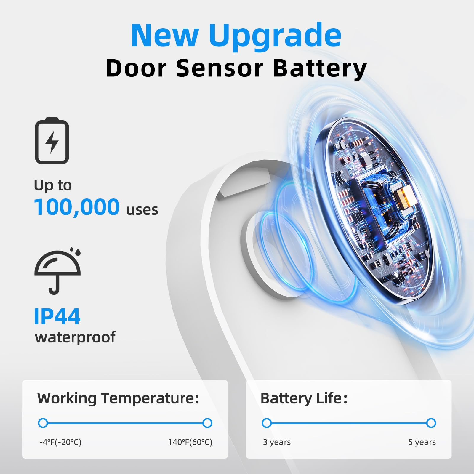 - 【Easy to Install】Wireless door open chime is easy to set up. The sensor and receiver are paired already. Just plug the door chime receiver into any standard outlet, tear the double- sided adhesive tape of door sensor and stick them to the door or window is fine