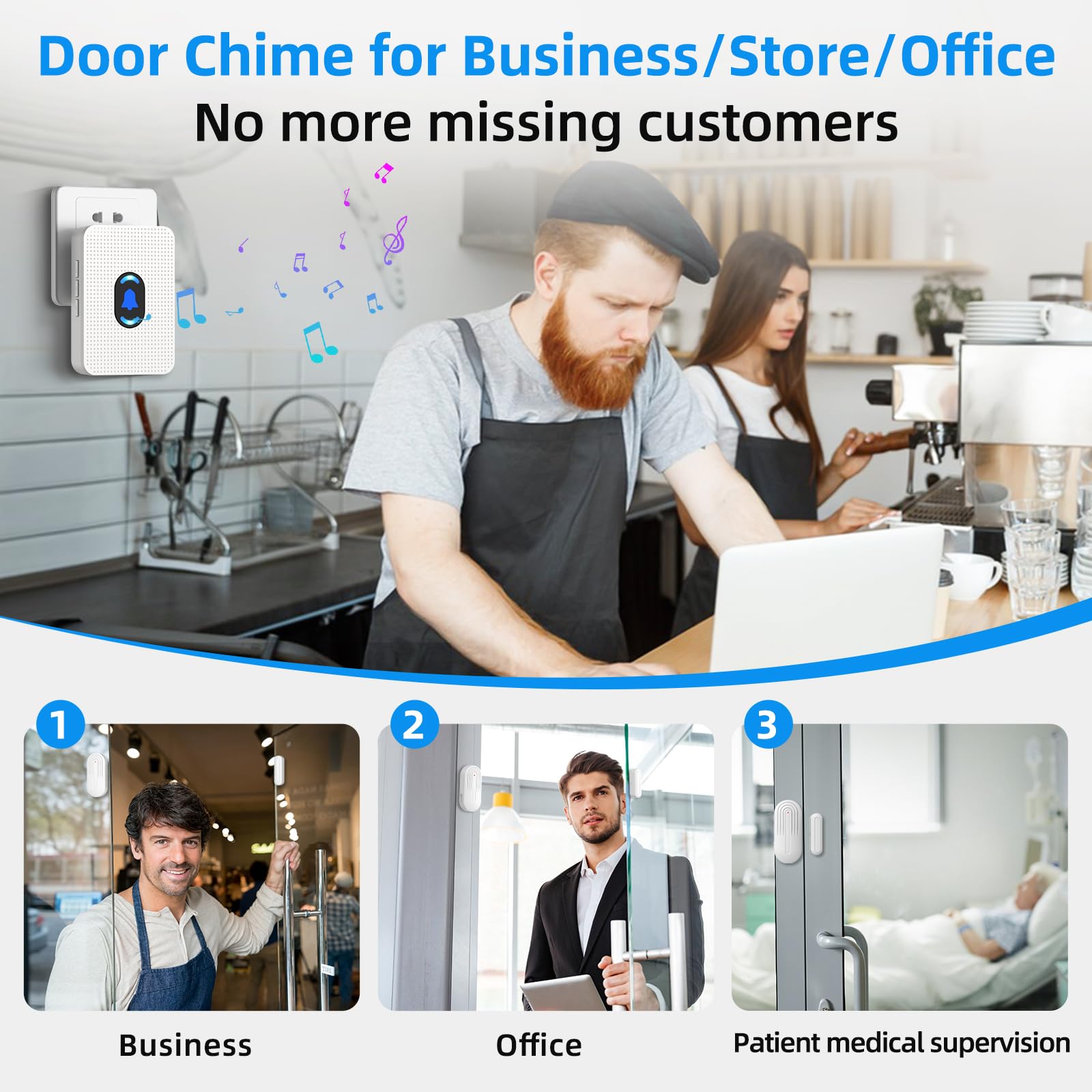 - 【Door Chime for Business When Entering】Our wireless door entry chime is perfect for stores and business operations. You can receive the signal at the counter when the customer entry, you will never miss any customers(visitors).And the door chime is also a welcome to customers